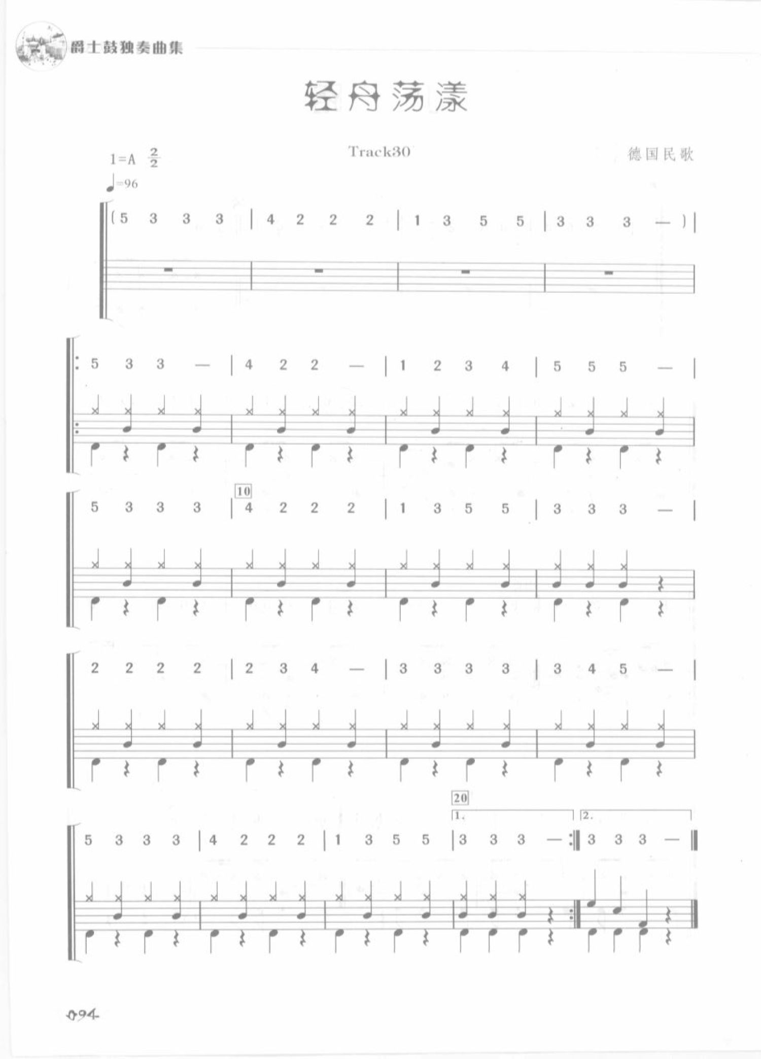 曲谱介绍: 轻舟荡漾(架子鼓谱)