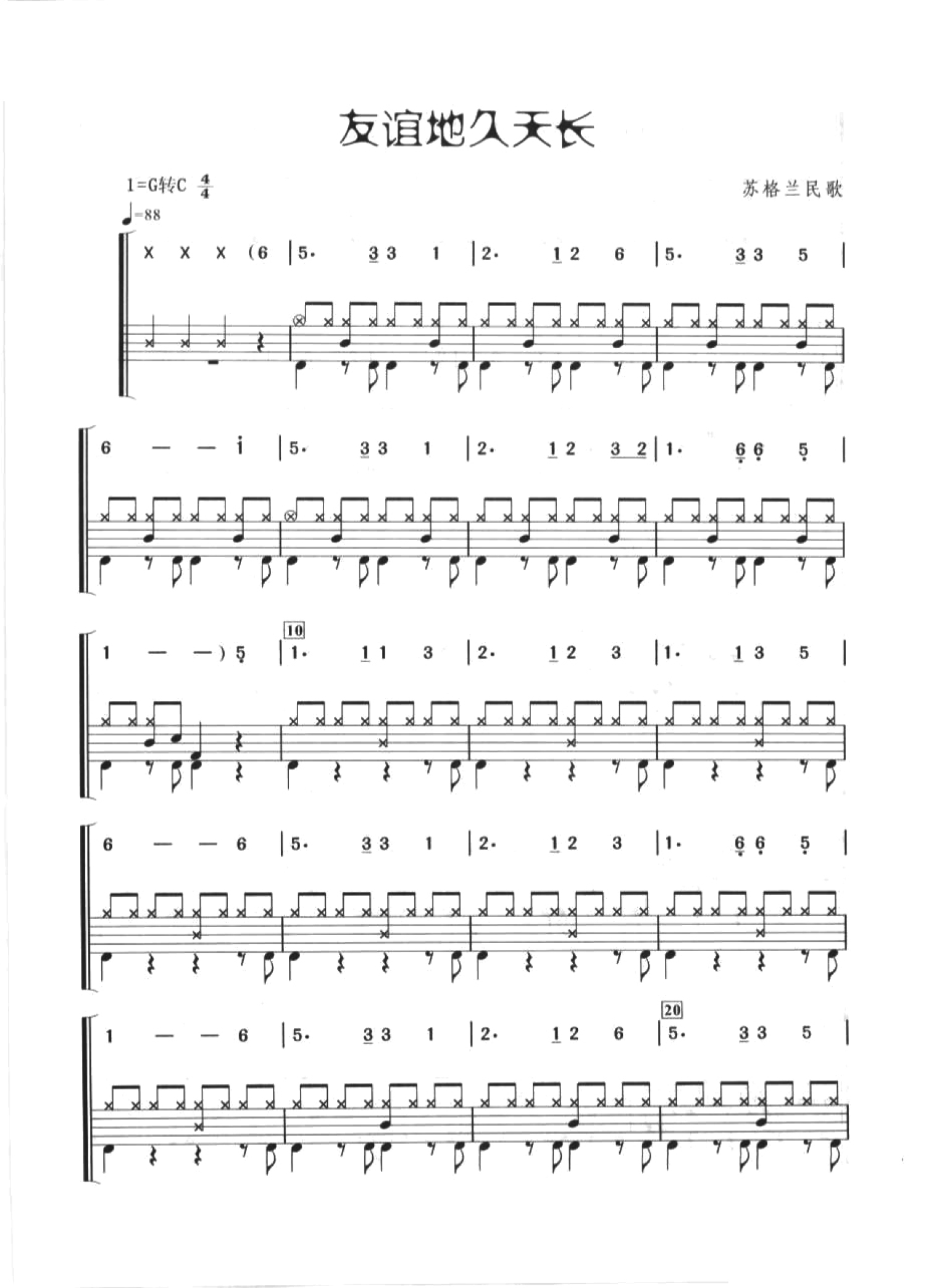 友谊地久天长鼓谱 - 苏格兰民歌 - 架子鼓谱