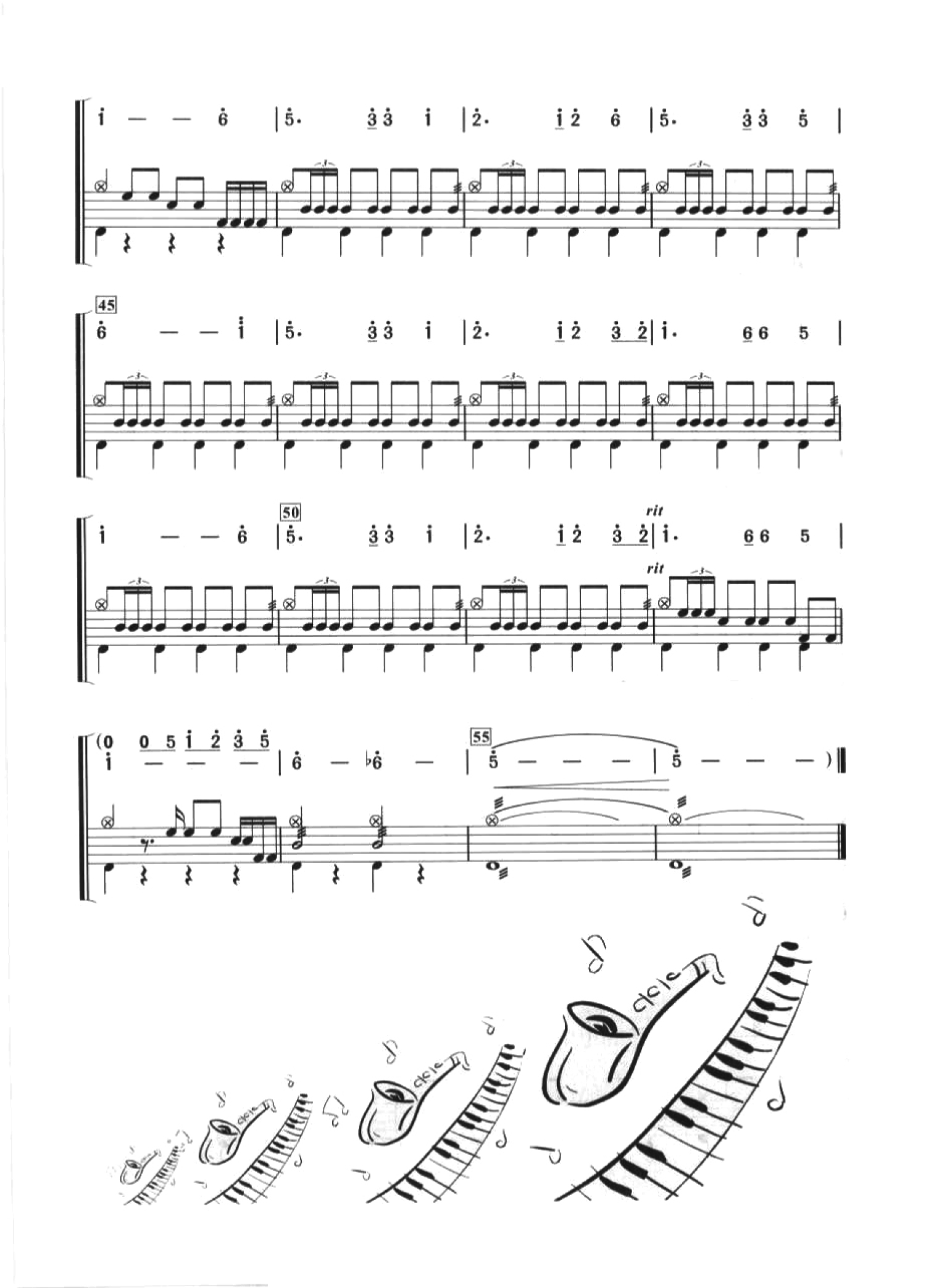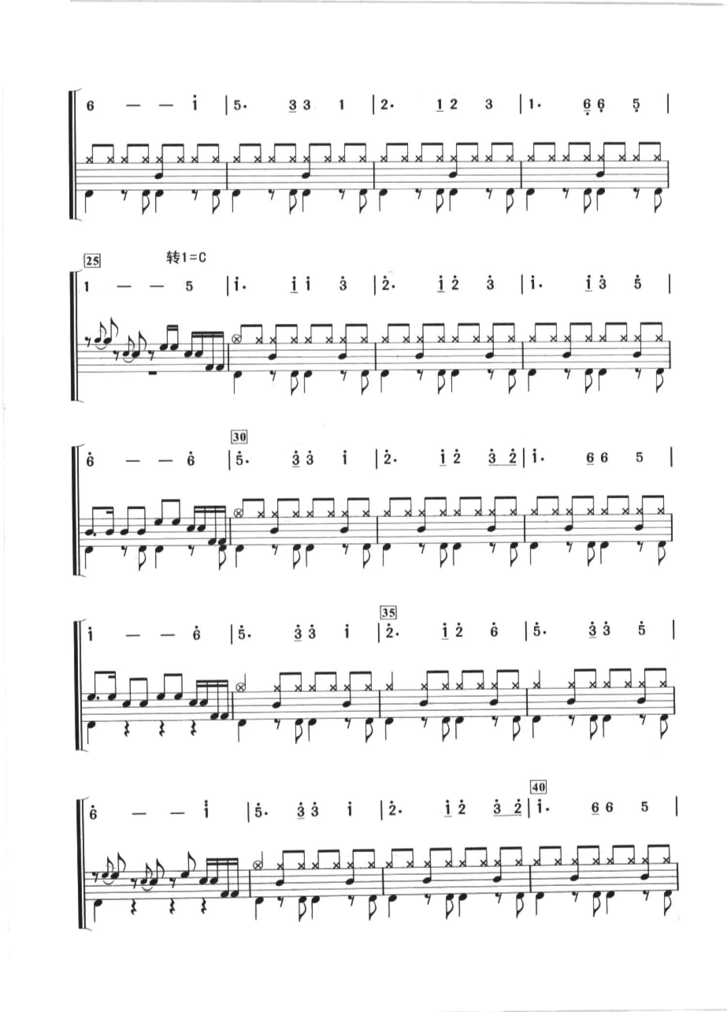 曲谱介绍: 友谊地久天长(架子鼓谱)