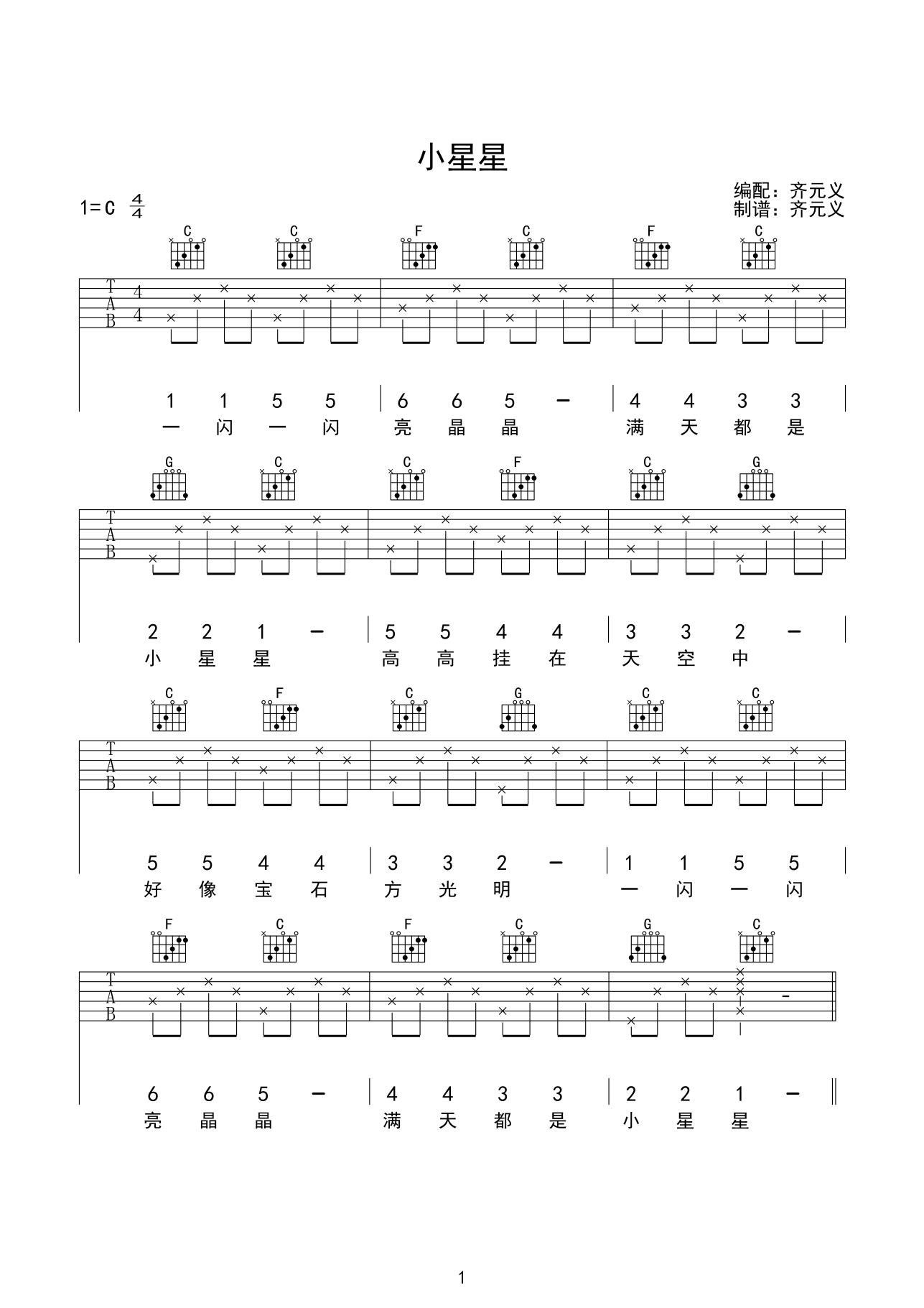 小星星吉他谱 - C调吉他弹唱谱