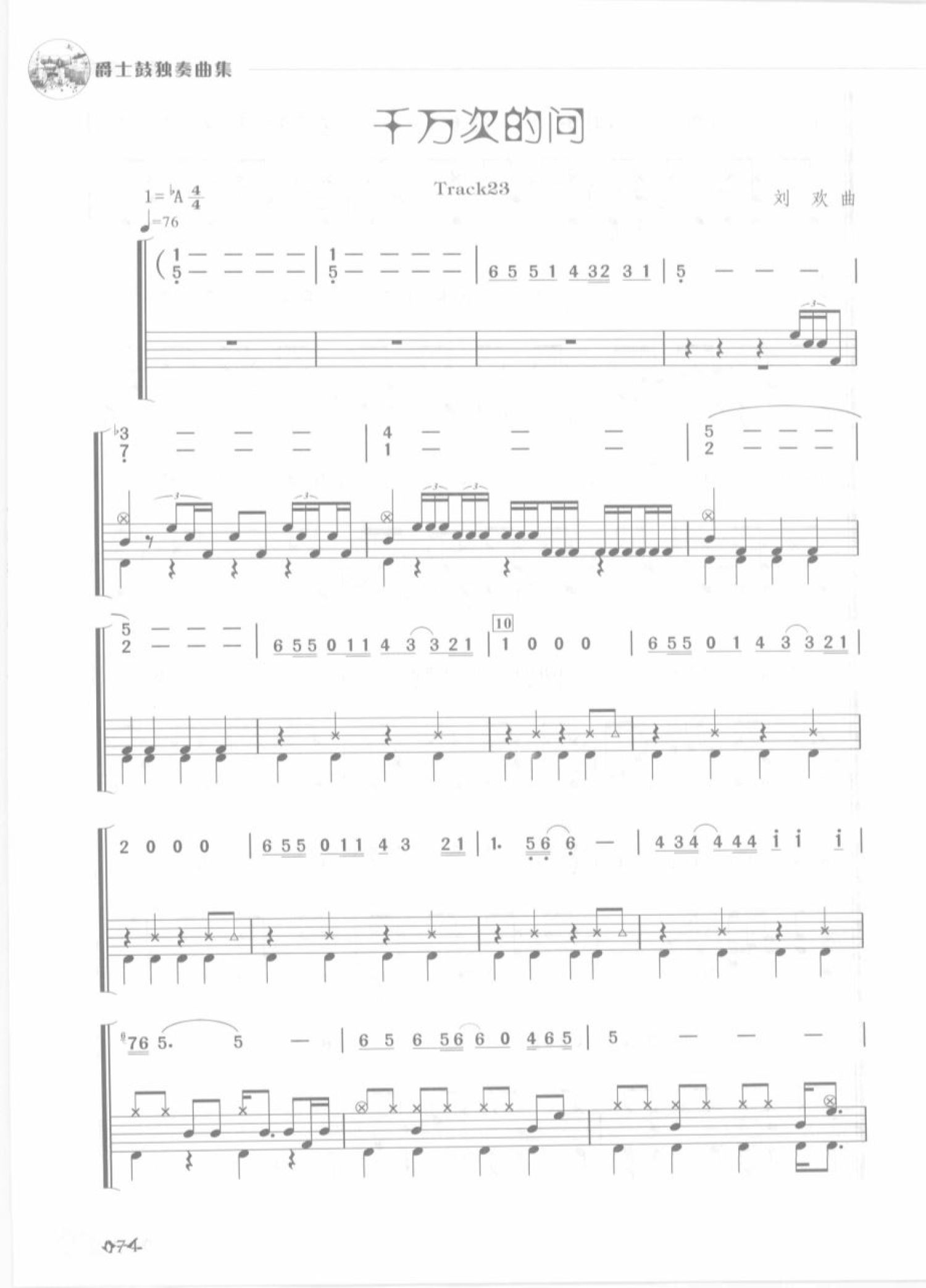 千万次的问鼓谱 - 刘欢 - 架子鼓谱