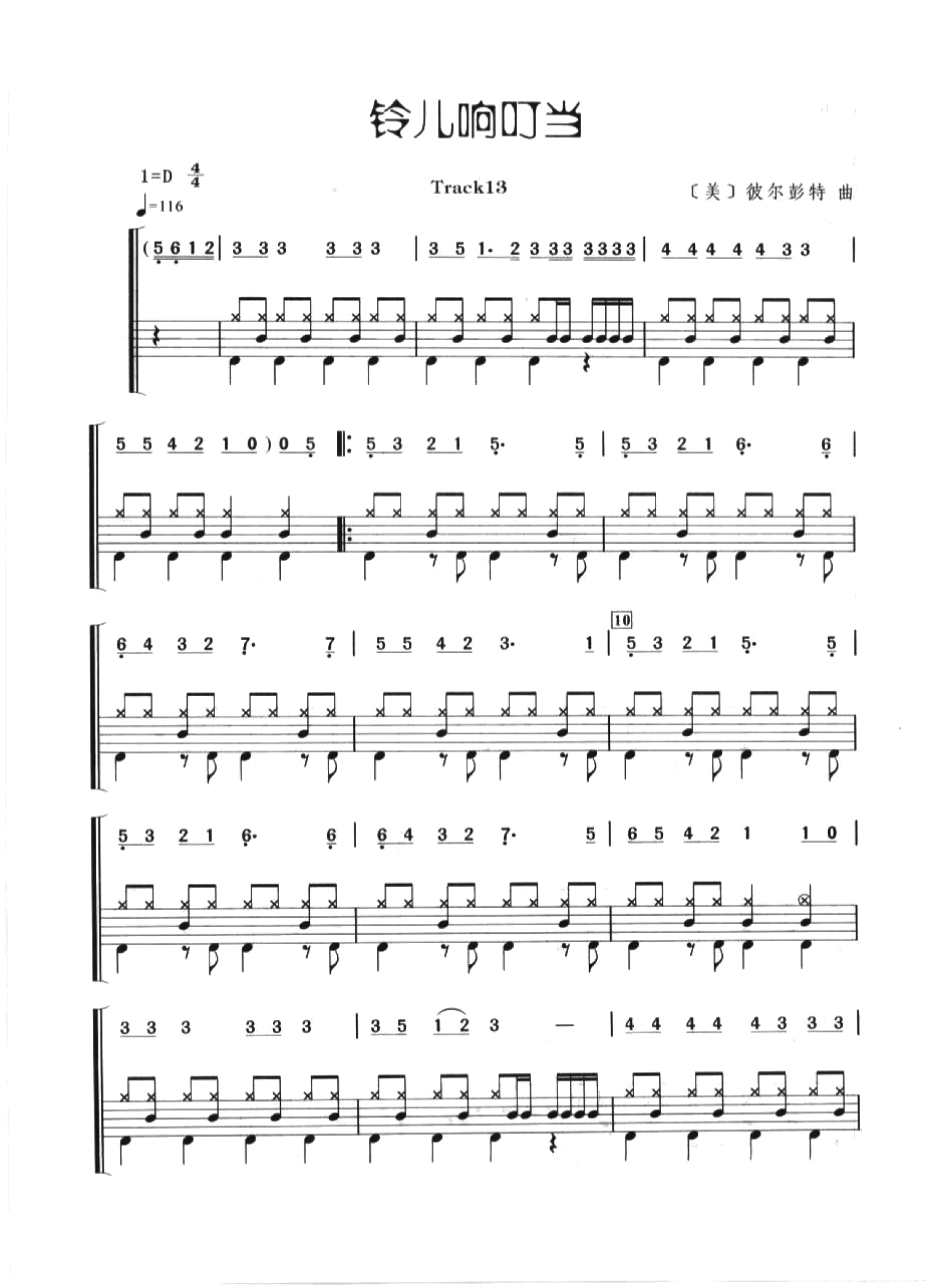 曲谱介绍: 铃儿响叮当(架子鼓谱)