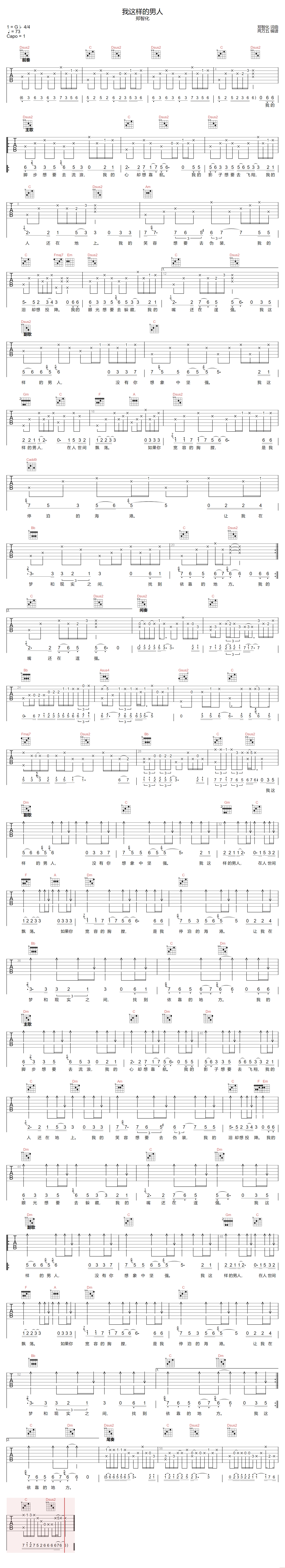 我这样的男人吉他谱 - 郑智化 - F调吉他弹唱谱 - 原版