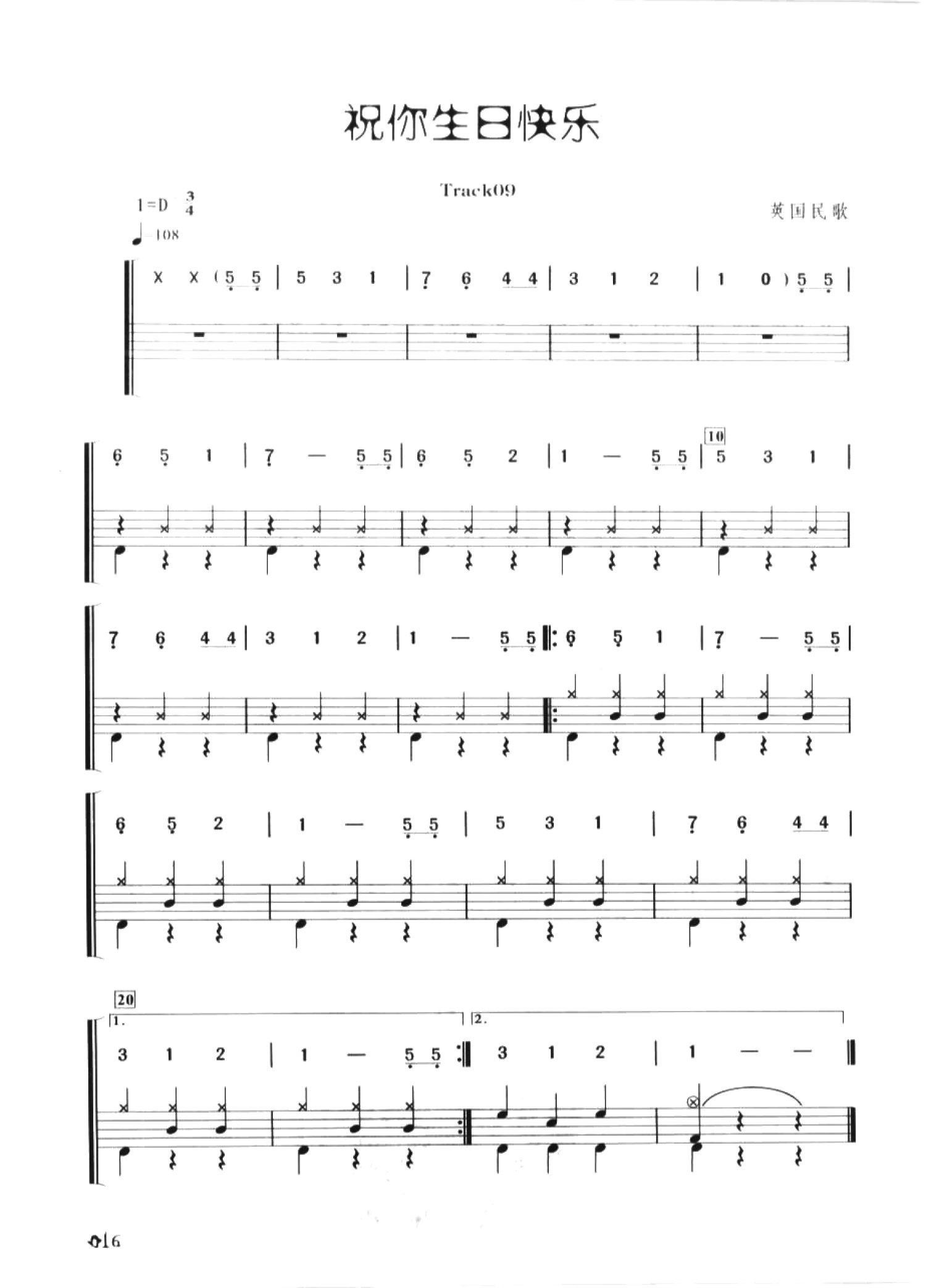 曲谱介绍: 祝你生日快乐(架子鼓谱)