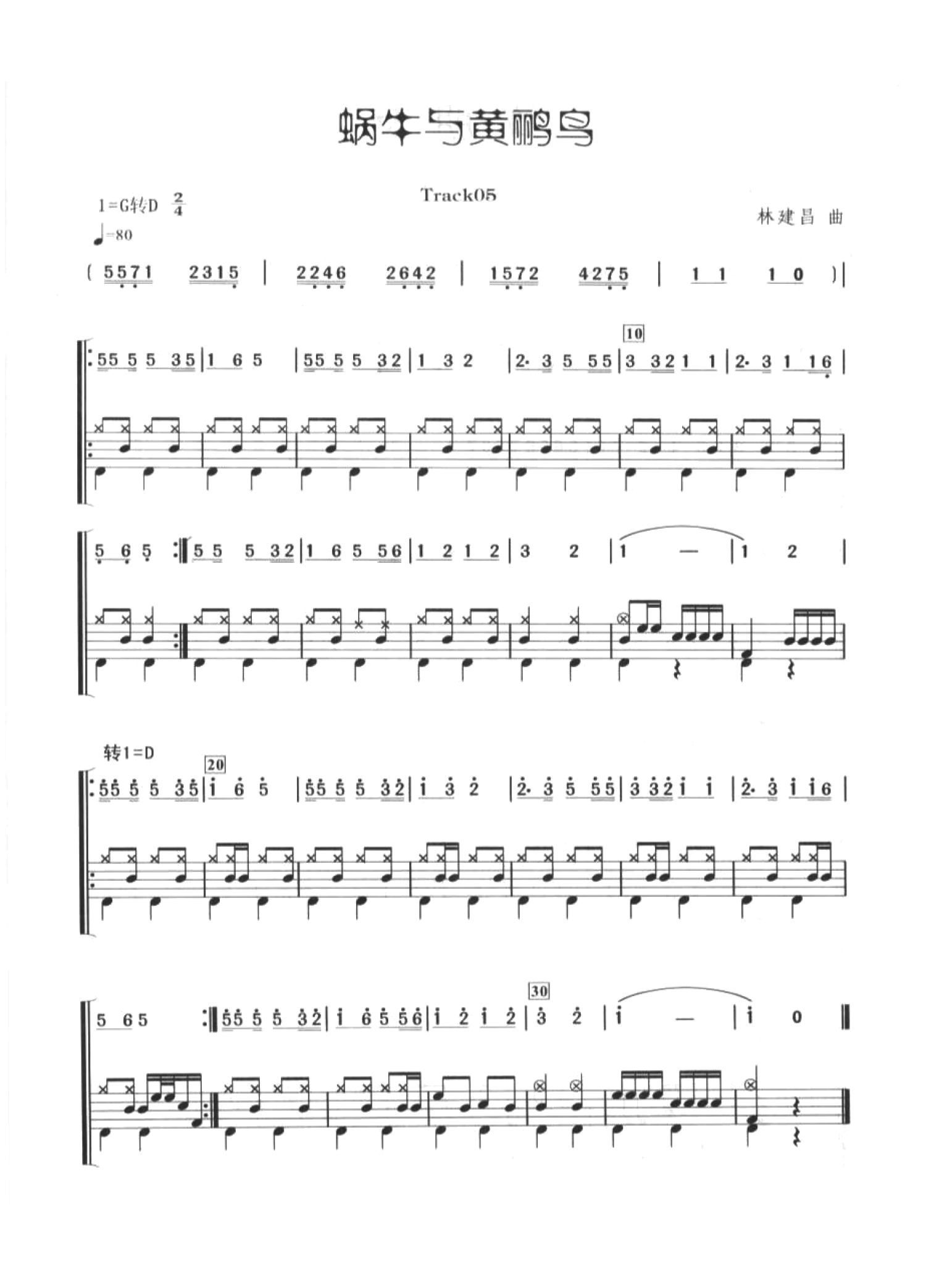 曲谱介绍: 蜗牛与黄鹂鸟(架子鼓谱)