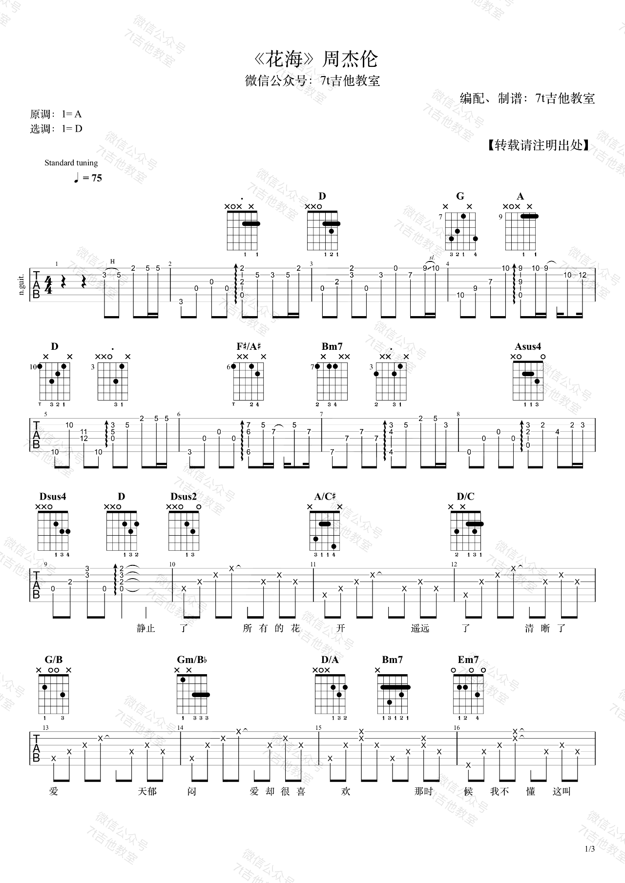 花海吉他谱 - 周杰伦 - D调吉他弹唱谱 - 原版