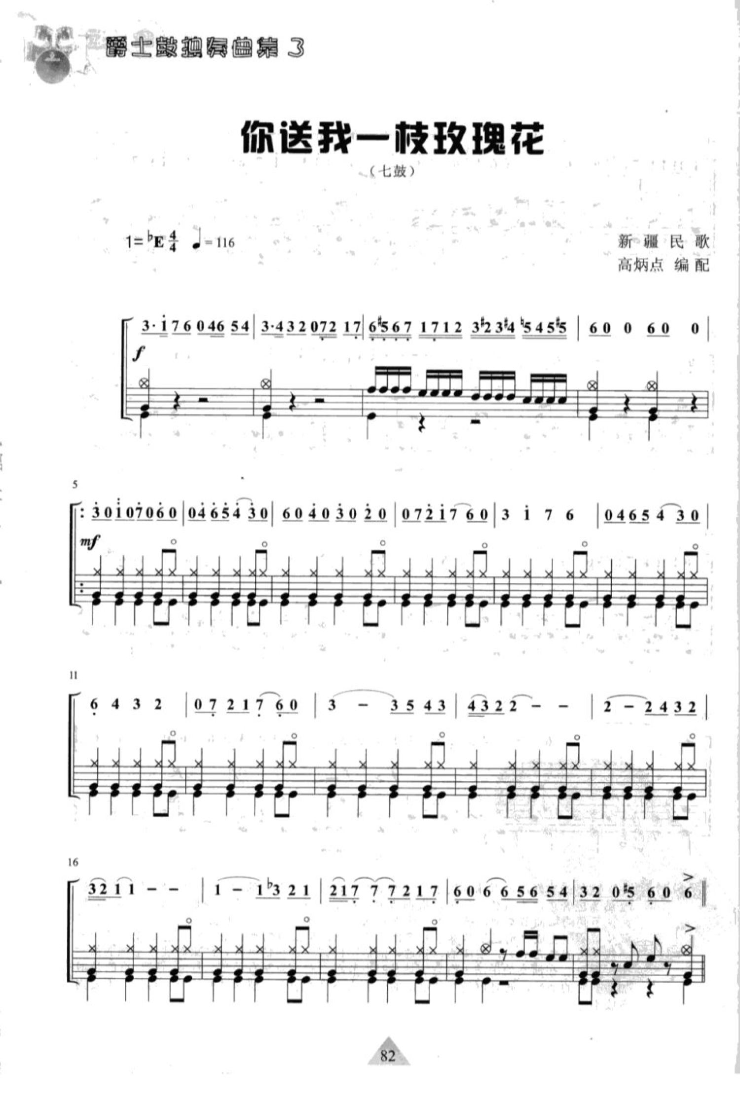 曲谱介绍: 你送我一枝玫瑰花(七个桶鼓演奏架子鼓谱)
