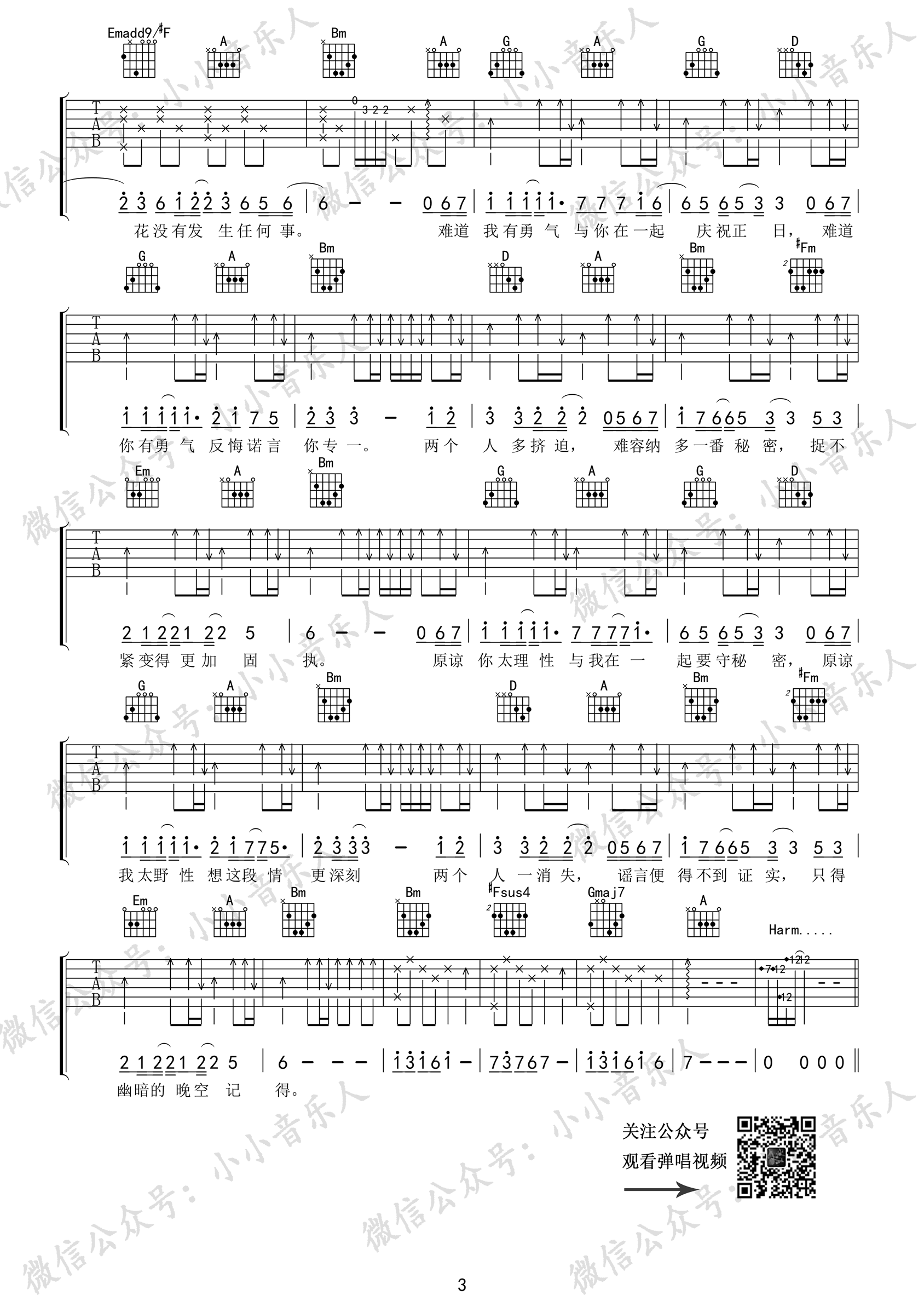 曲谱介绍: 张敬轩演唱的一首歌曲,4/4拍的节奏,这首歌曲的原调为D调,这里曲谱采用了D调指法进行编配,演唱时可不夹变调夹,曲谱由琴谱网更新上传,来源于@小小音乐人编配出品。歌曲讲述的是一个第三者的感情以及心理,当你喜欢上一个人却发现自己是第三者时,你是否也会苦于深爱却无法告知、无法争夺成功的困境,就像是被困于空无一人的《吴哥窟》一样孤独无助。