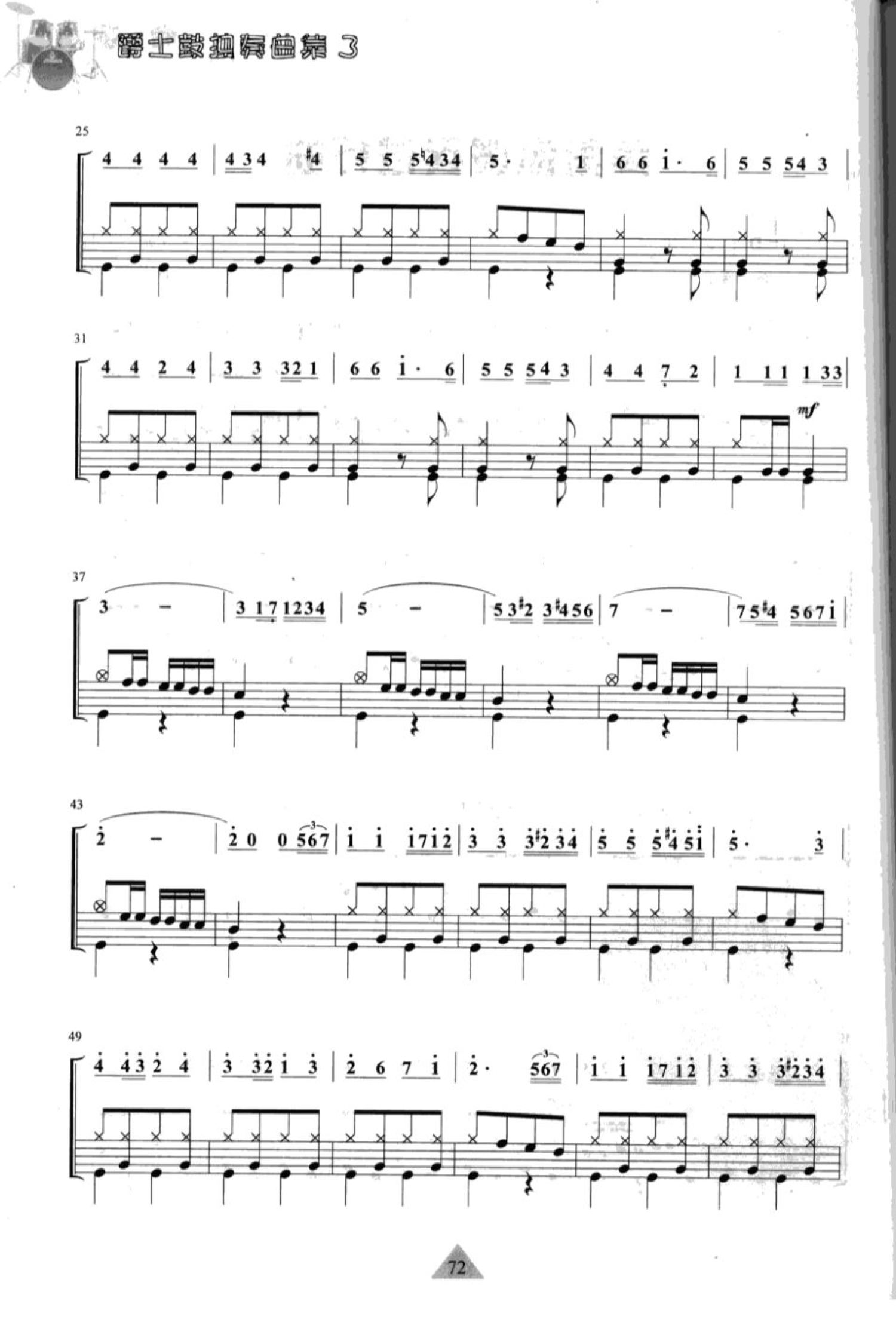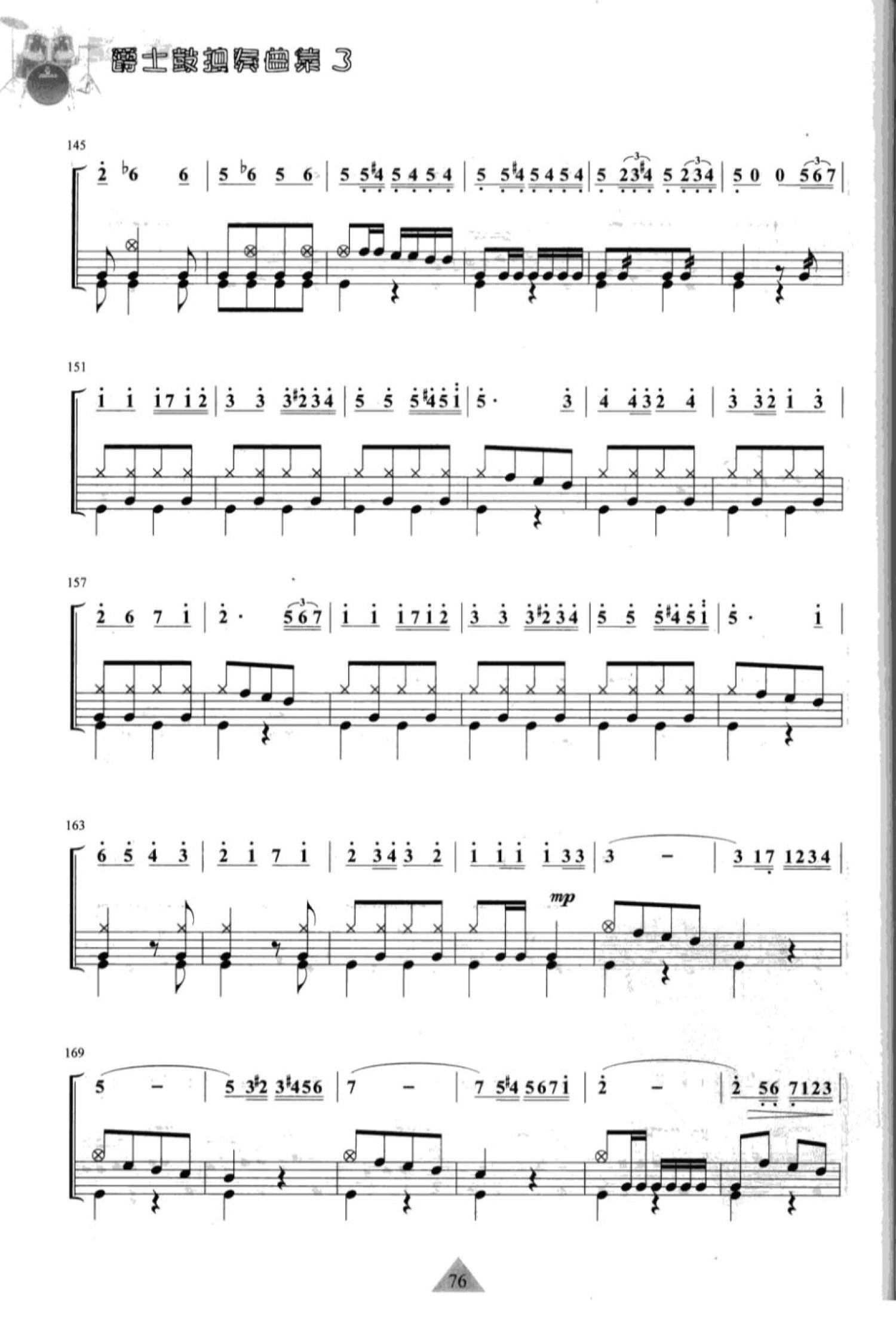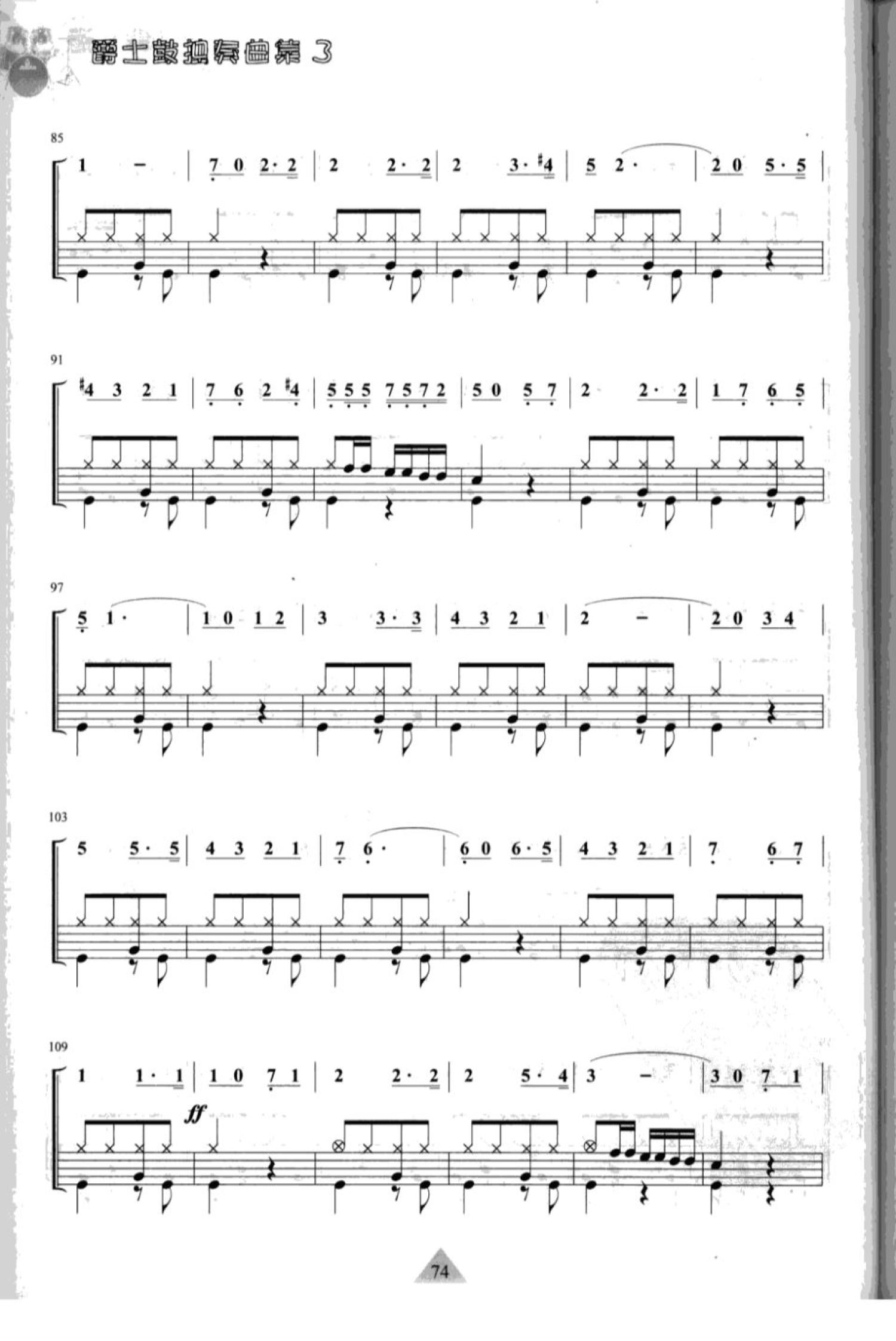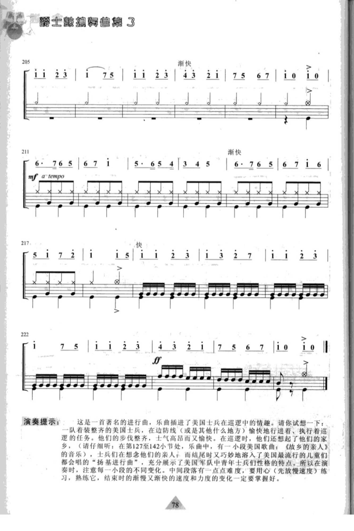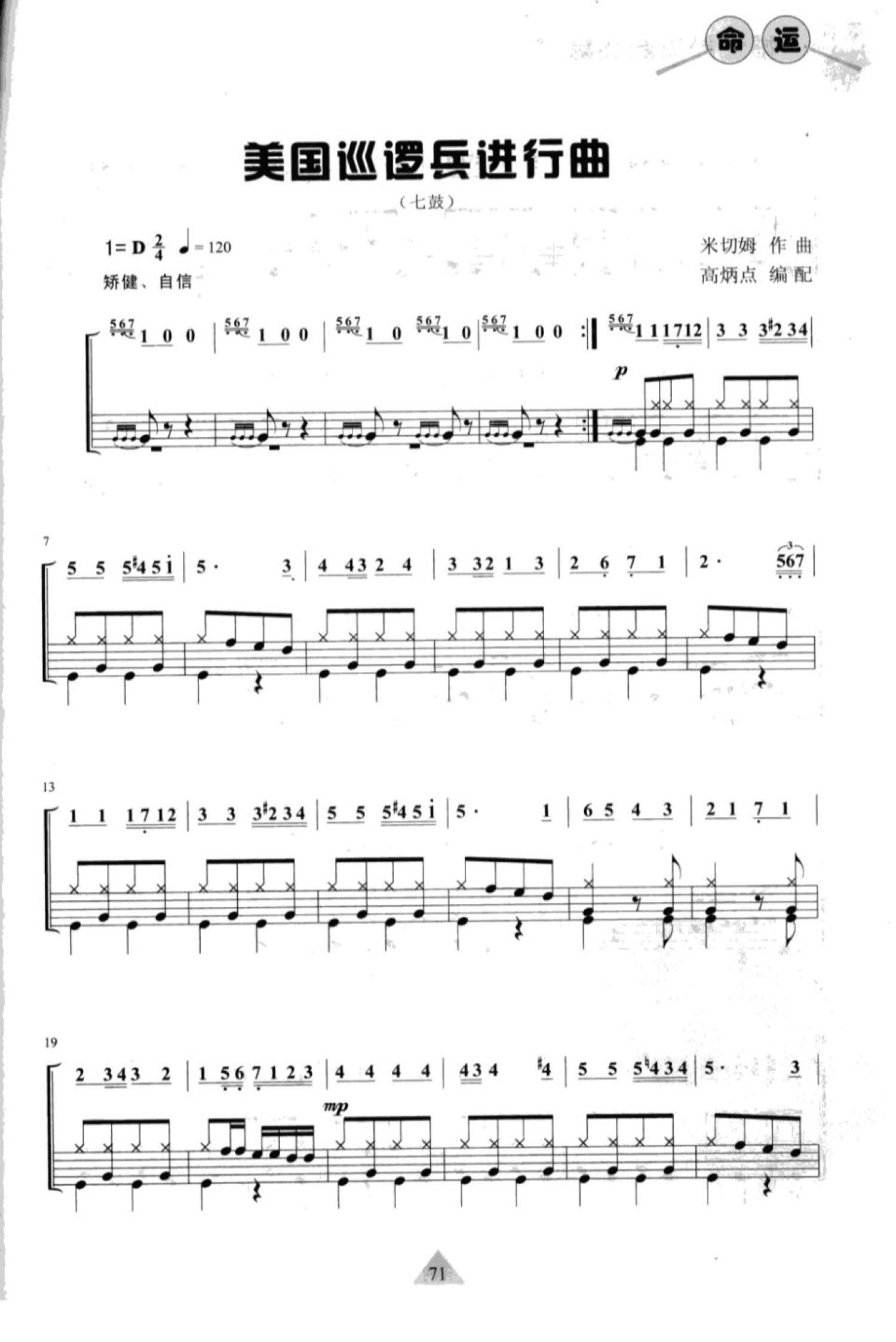 曲谱介绍: 美国巡逻兵进行曲(七个桶鼓演奏架子鼓谱)