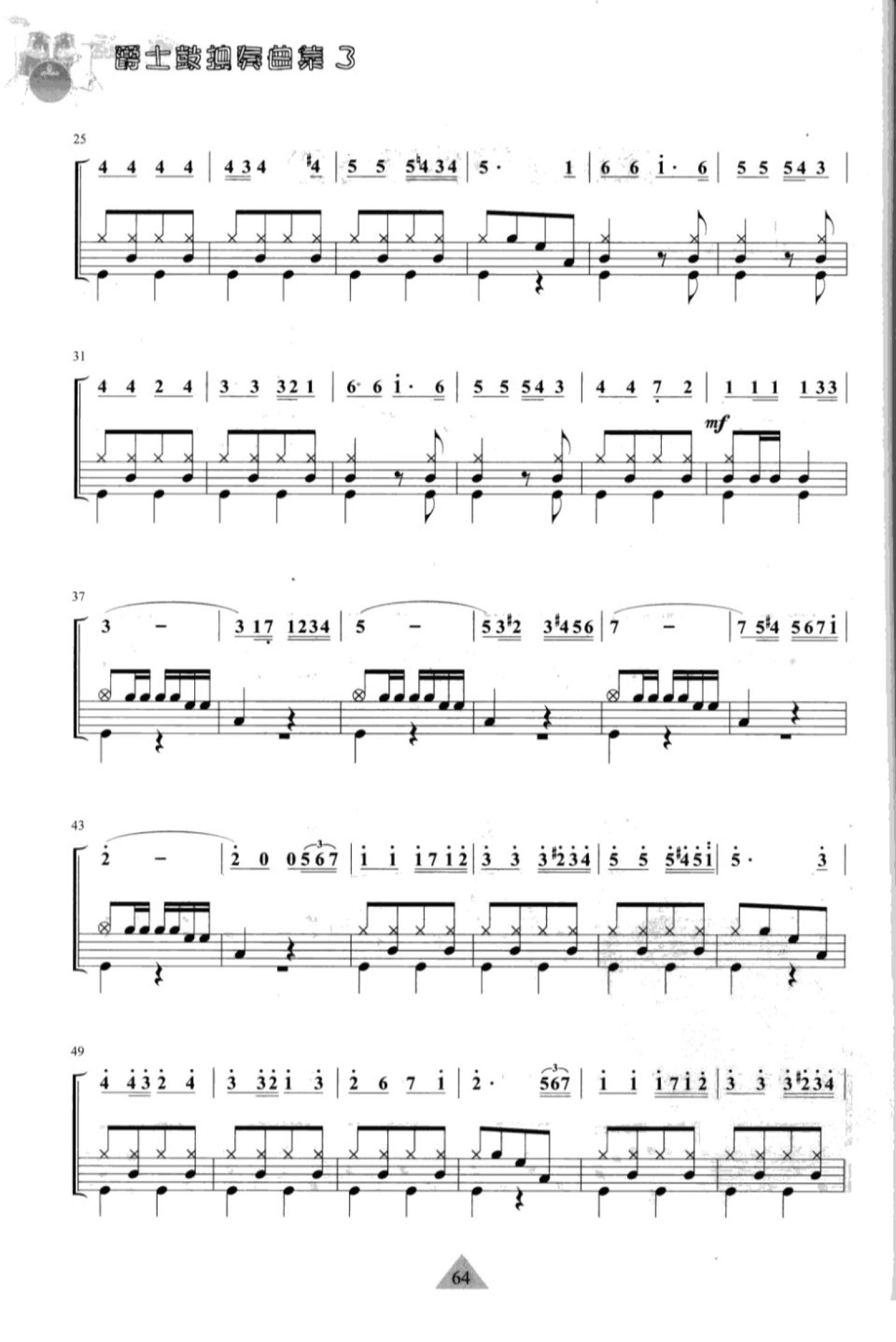 曲谱介绍: 美国巡逻兵进行曲(五个桶鼓演奏架子鼓谱)