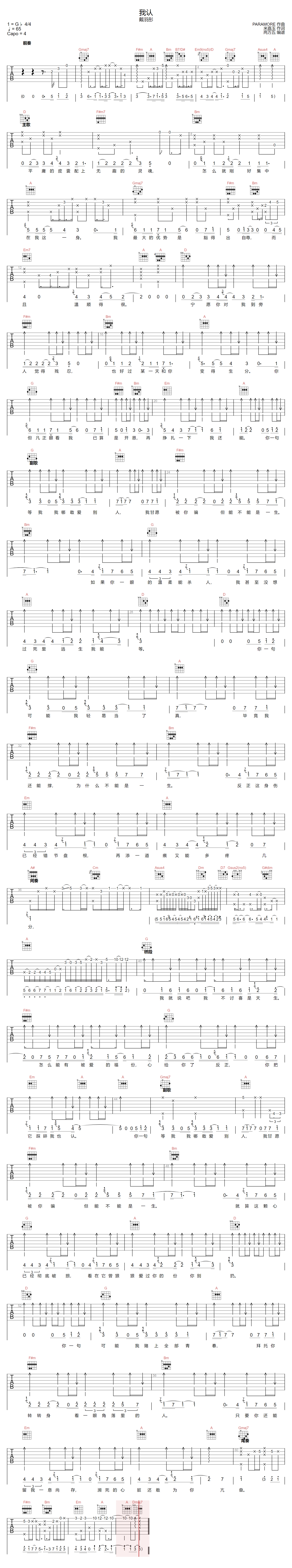 当前位置:琴谱网>吉他弹唱>我认