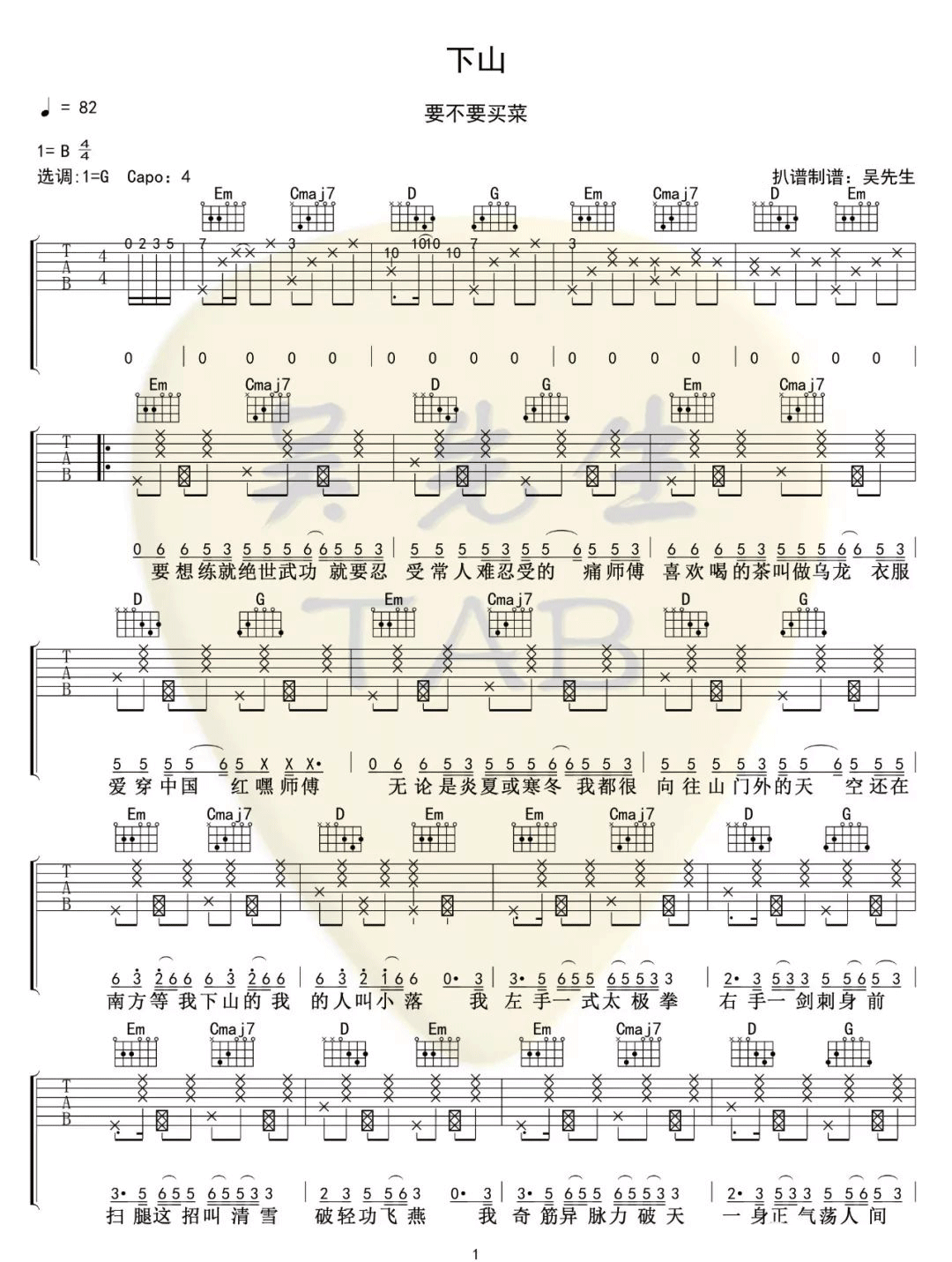 下山吉他谱 - 要不要买菜 - G调吉他弹唱谱 - 原版