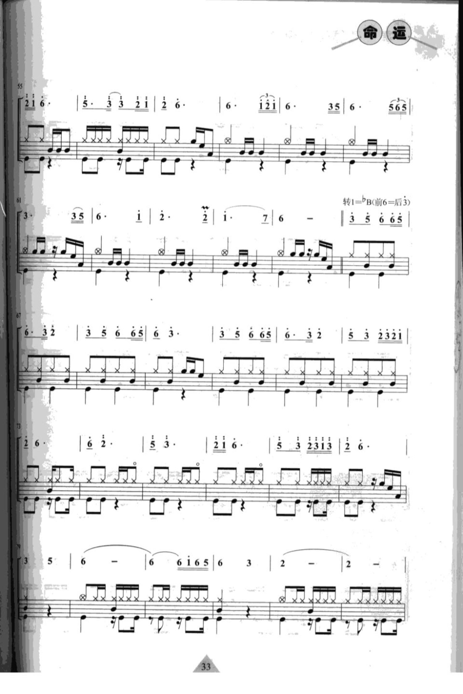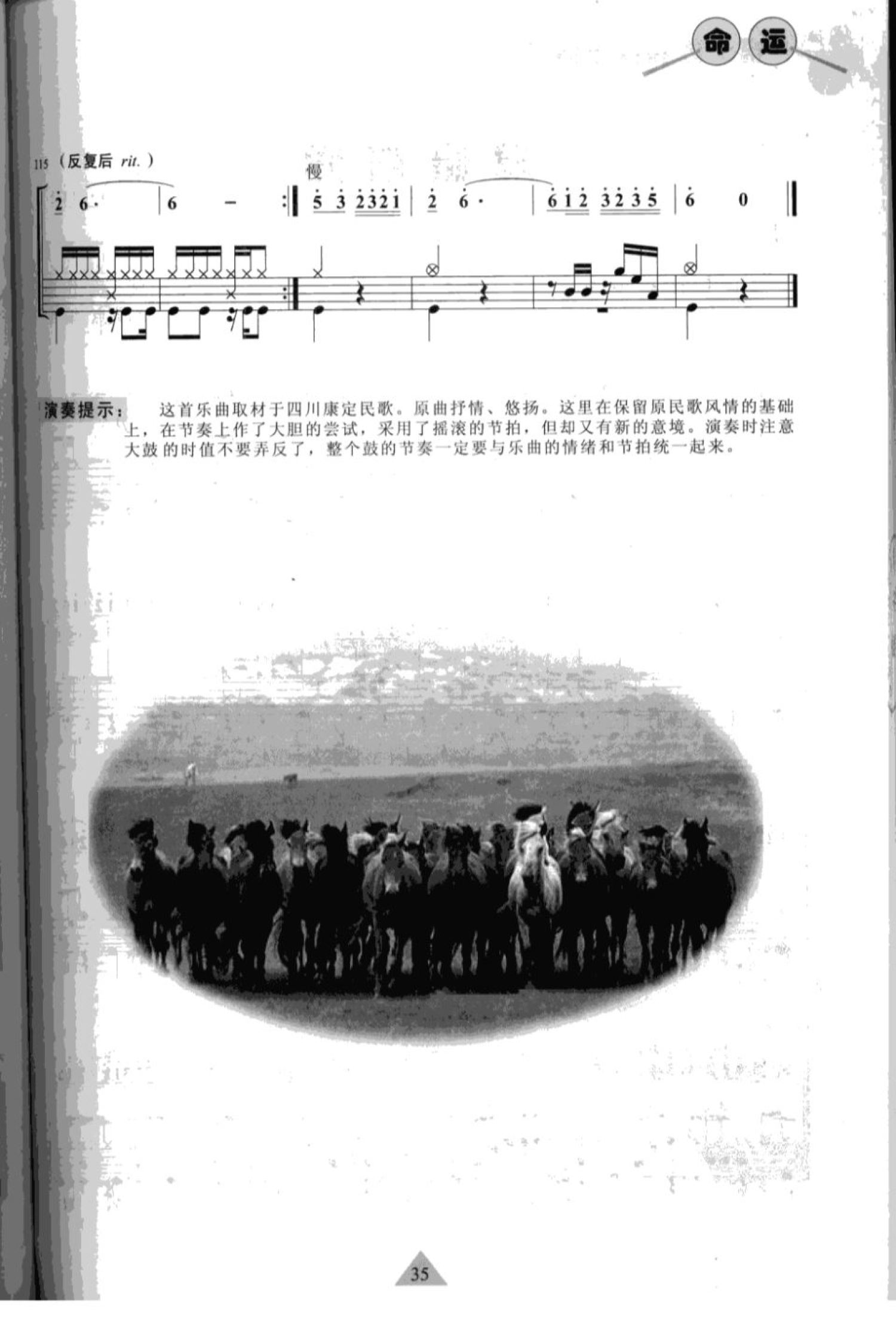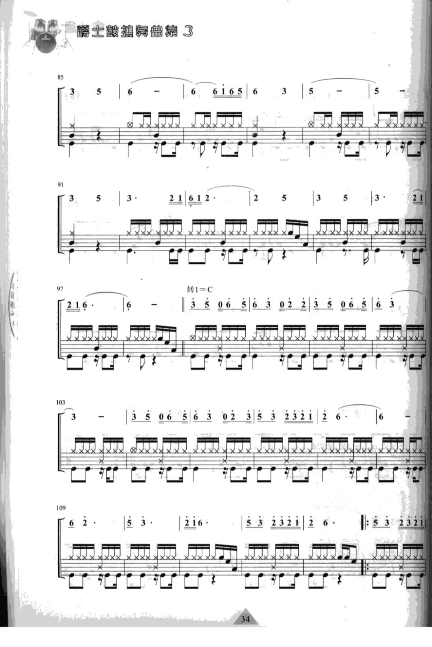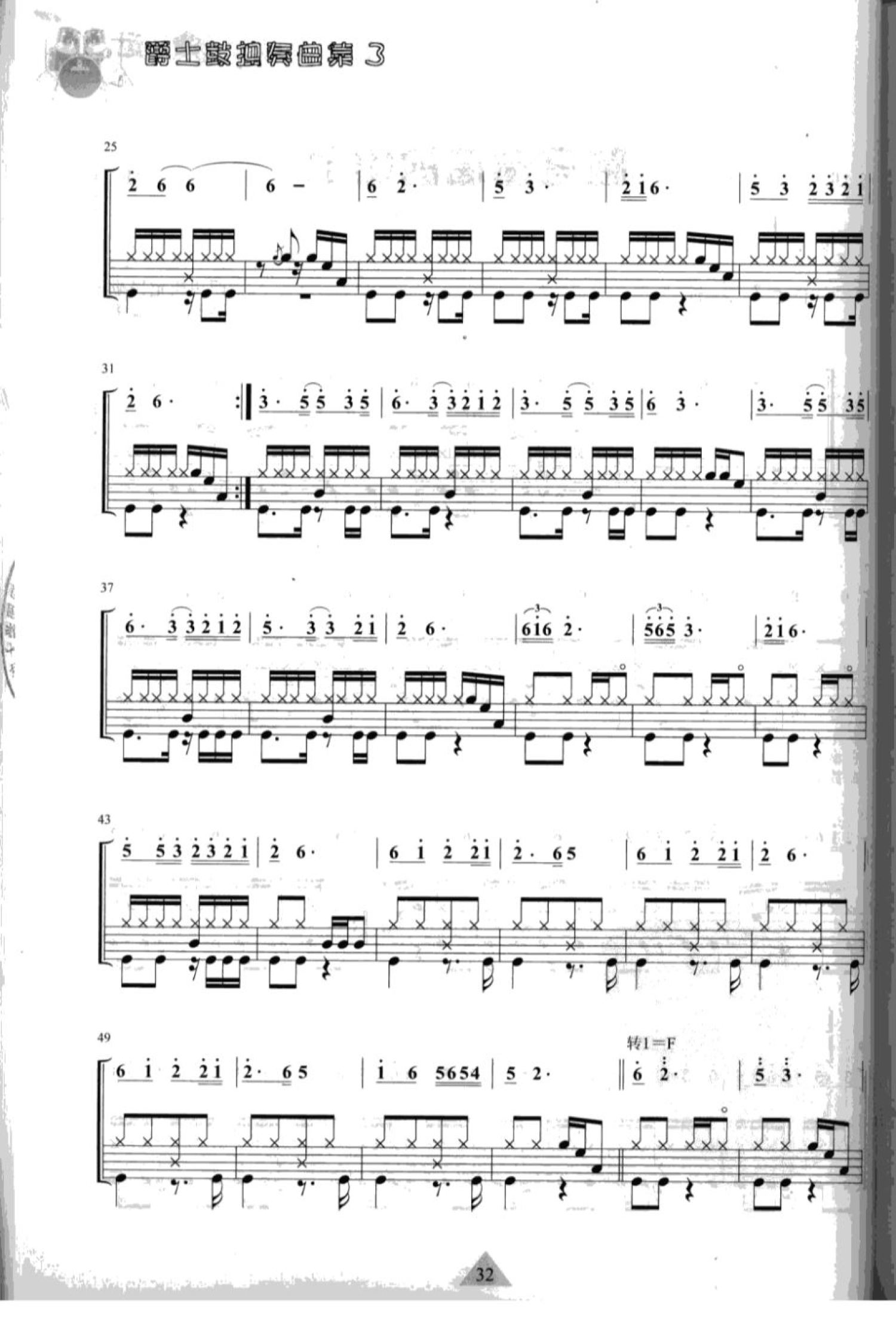 曲谱介绍: 跑马溜溜的山上(架子鼓谱)