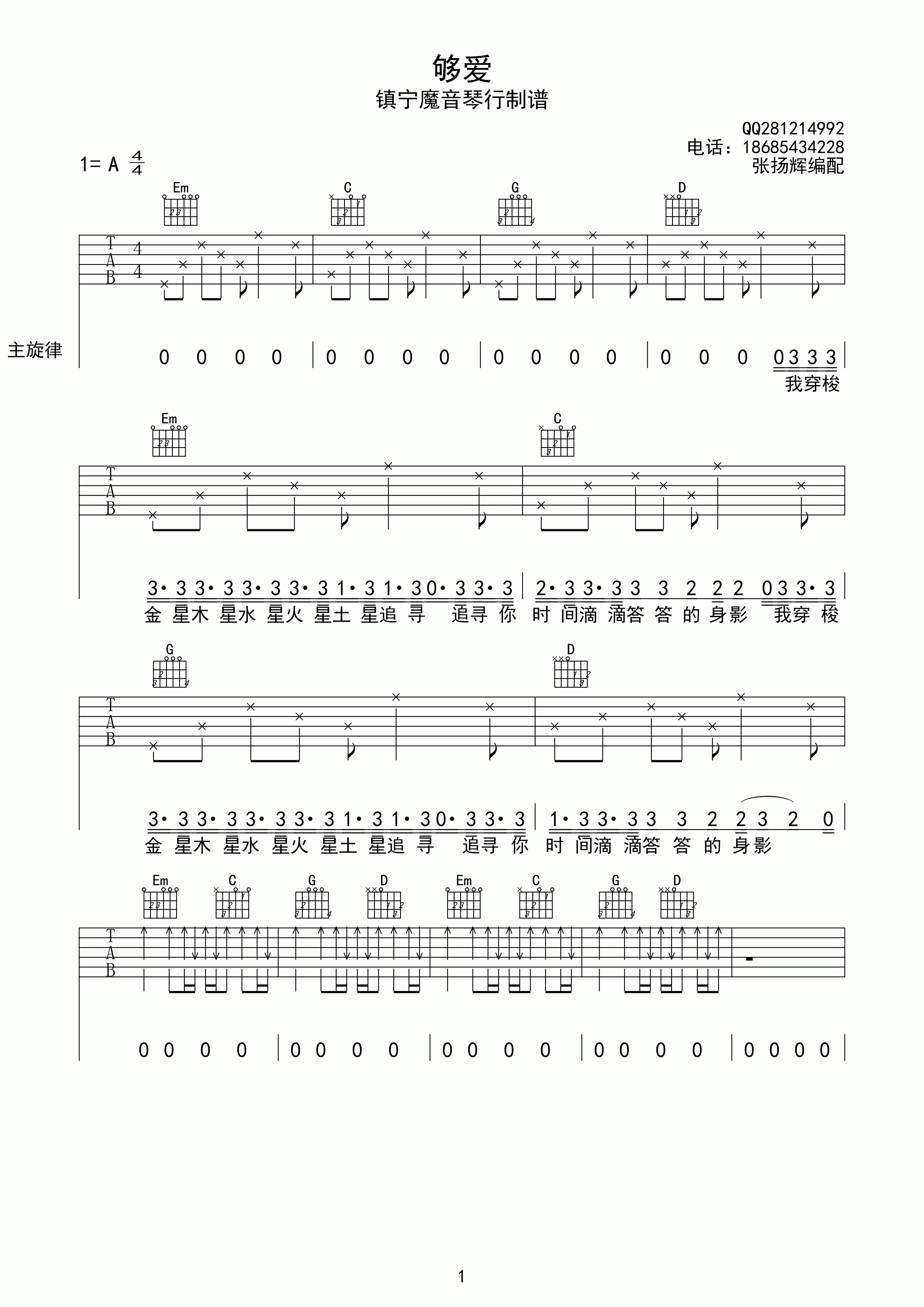 当前位置:琴谱网>吉他弹唱>够爱