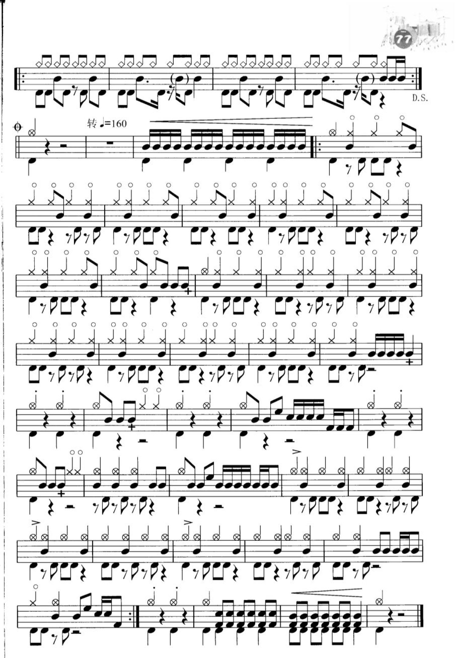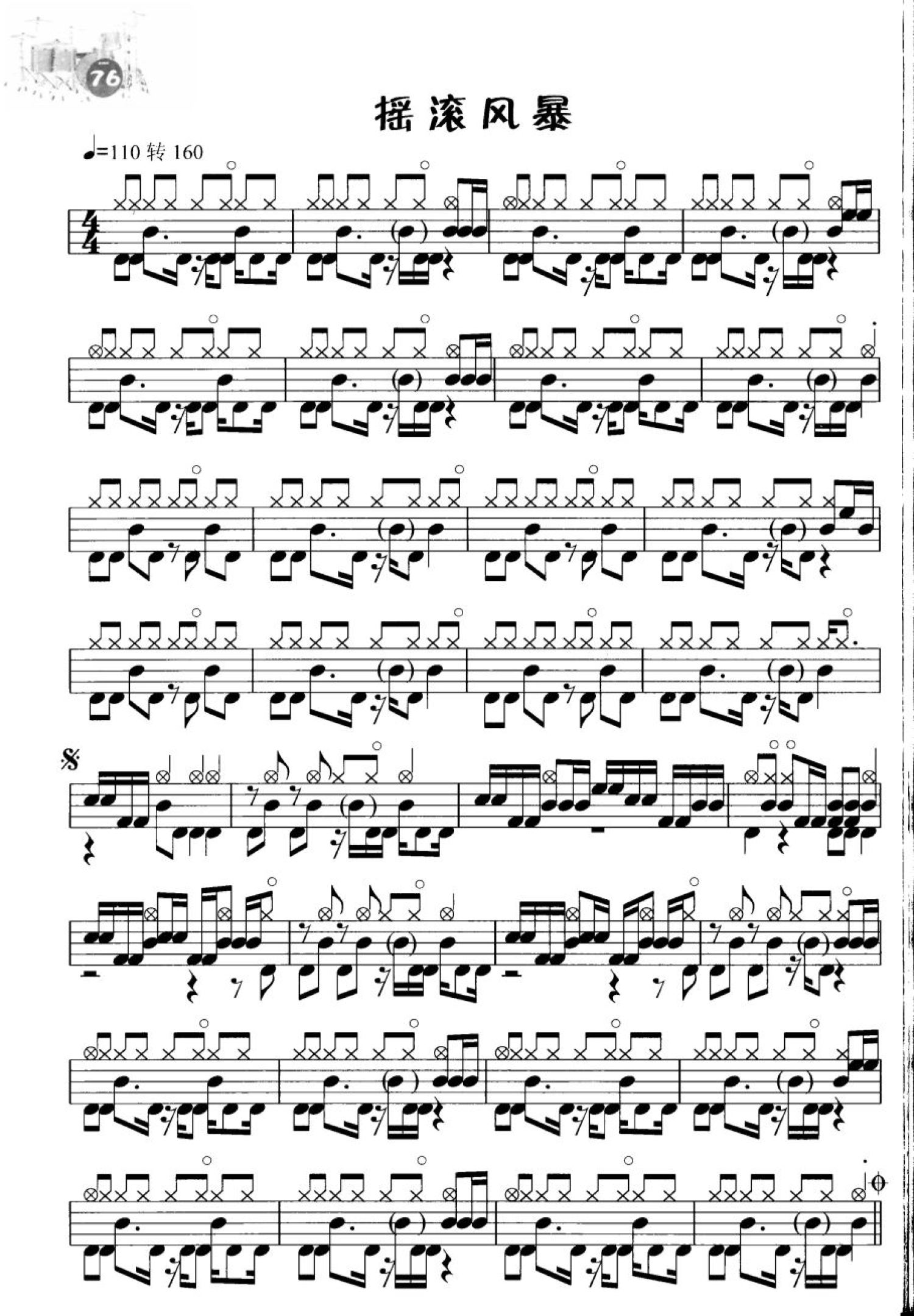 曲谱介绍: 摇滚风暴(不带简谱版架子鼓谱)