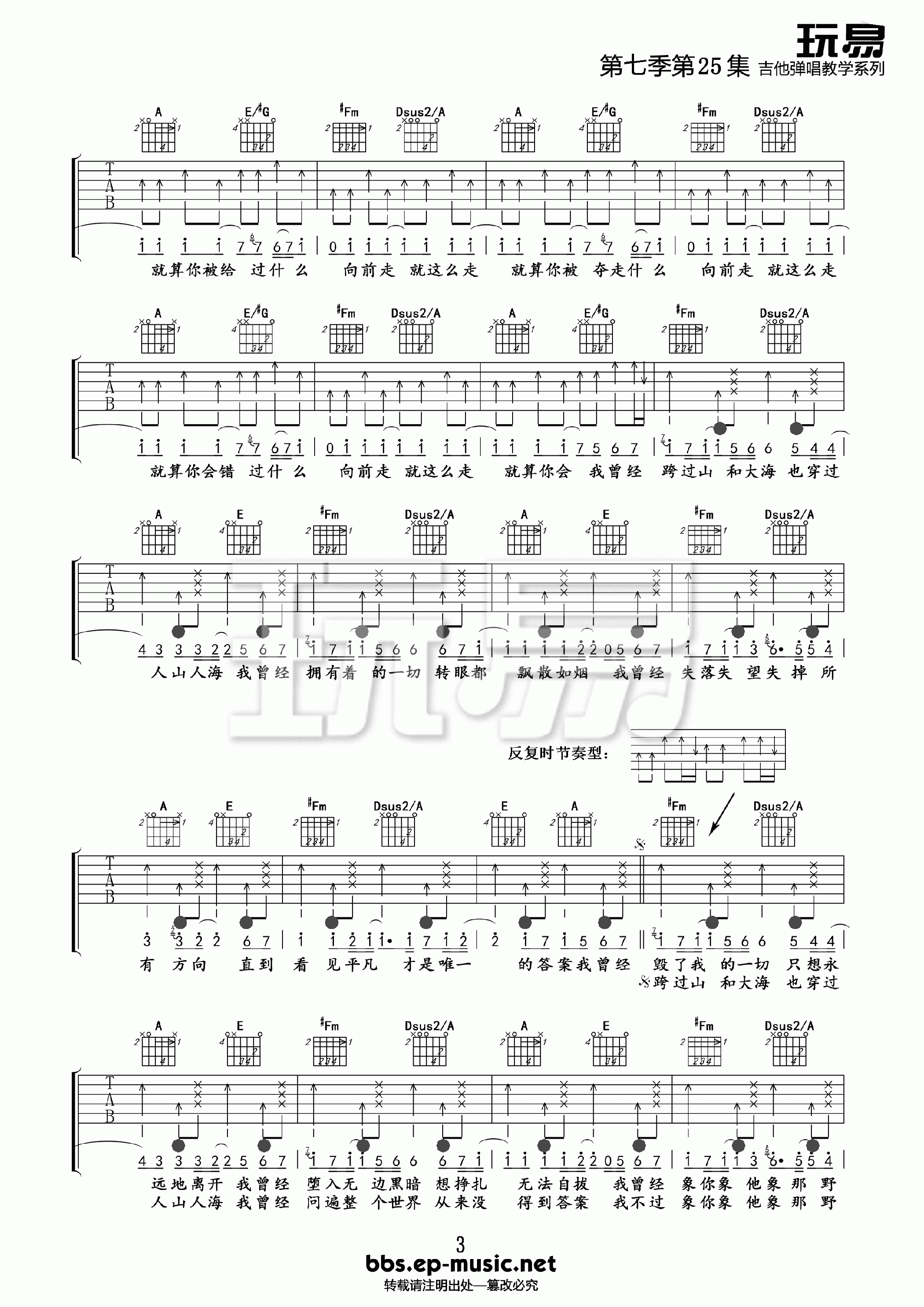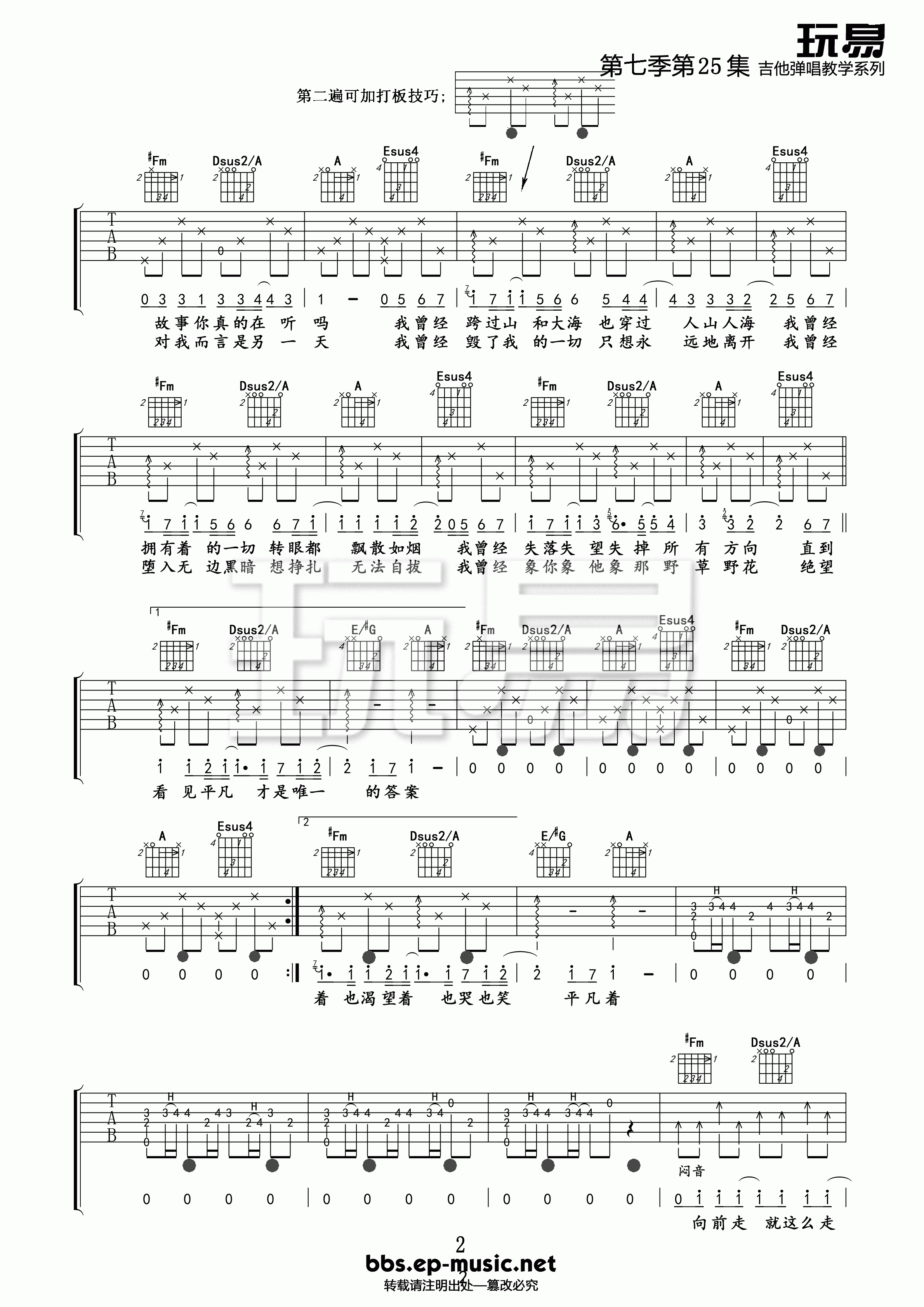 平凡之路吉他谱 - 朴树经典民谣 - A调吉他弹唱谱