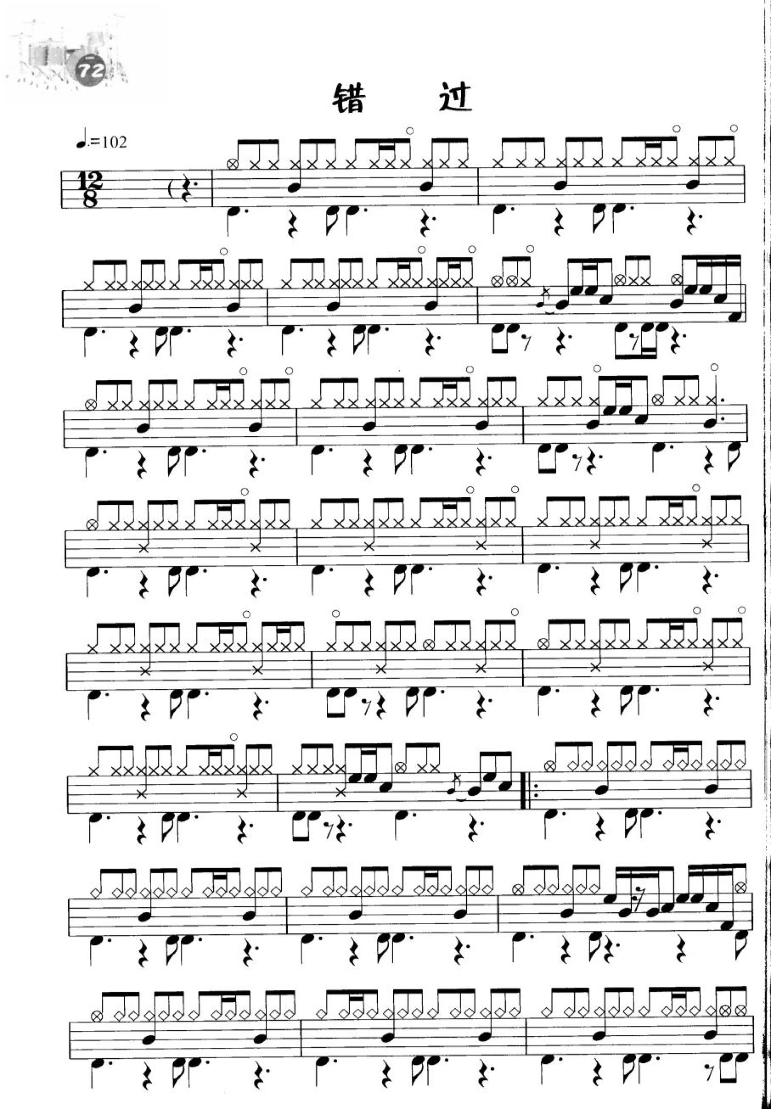 曲谱介绍: 错过(不带简谱版架子鼓谱)