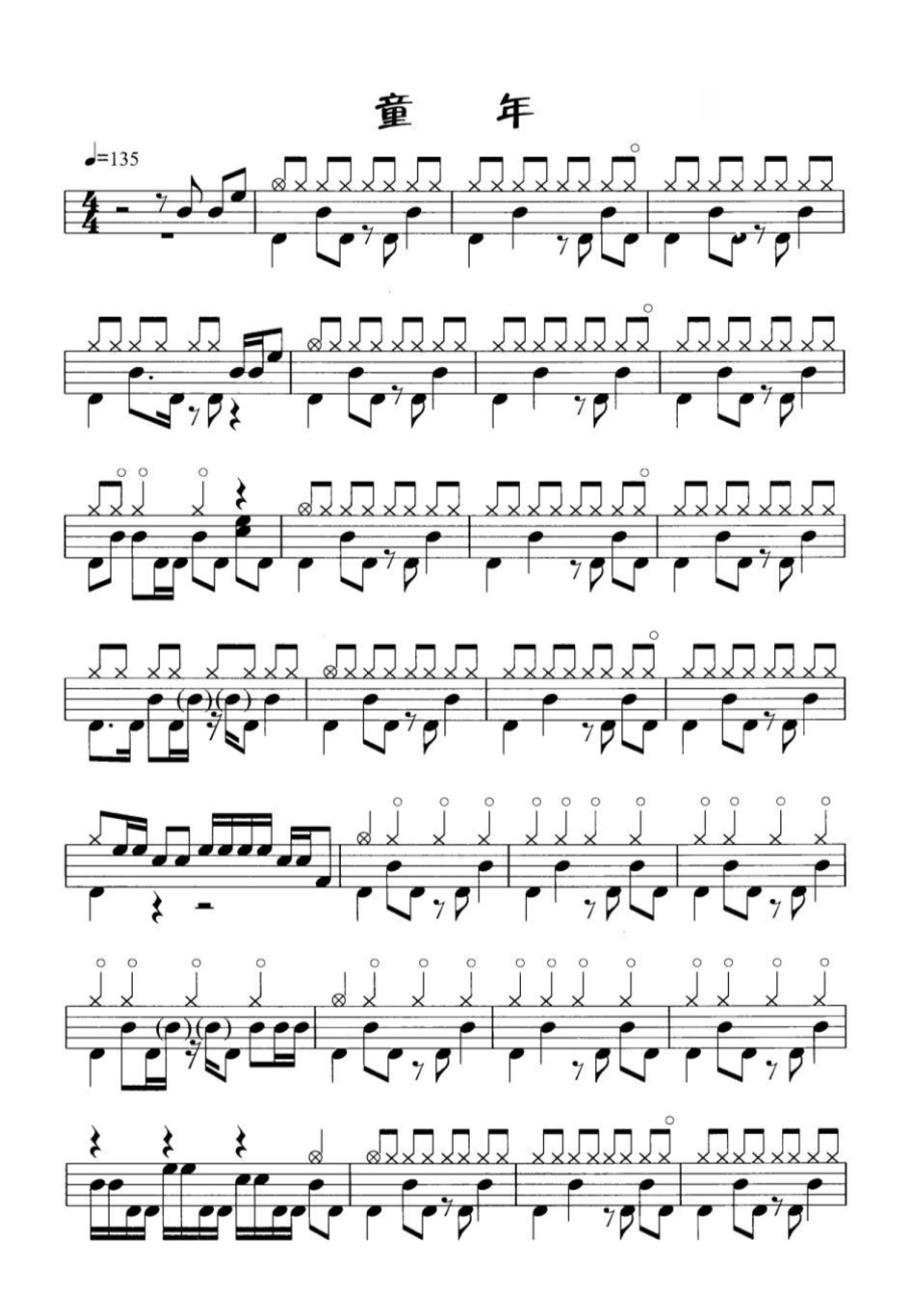 曲谱介绍: 童年(不带简谱版架子鼓谱)