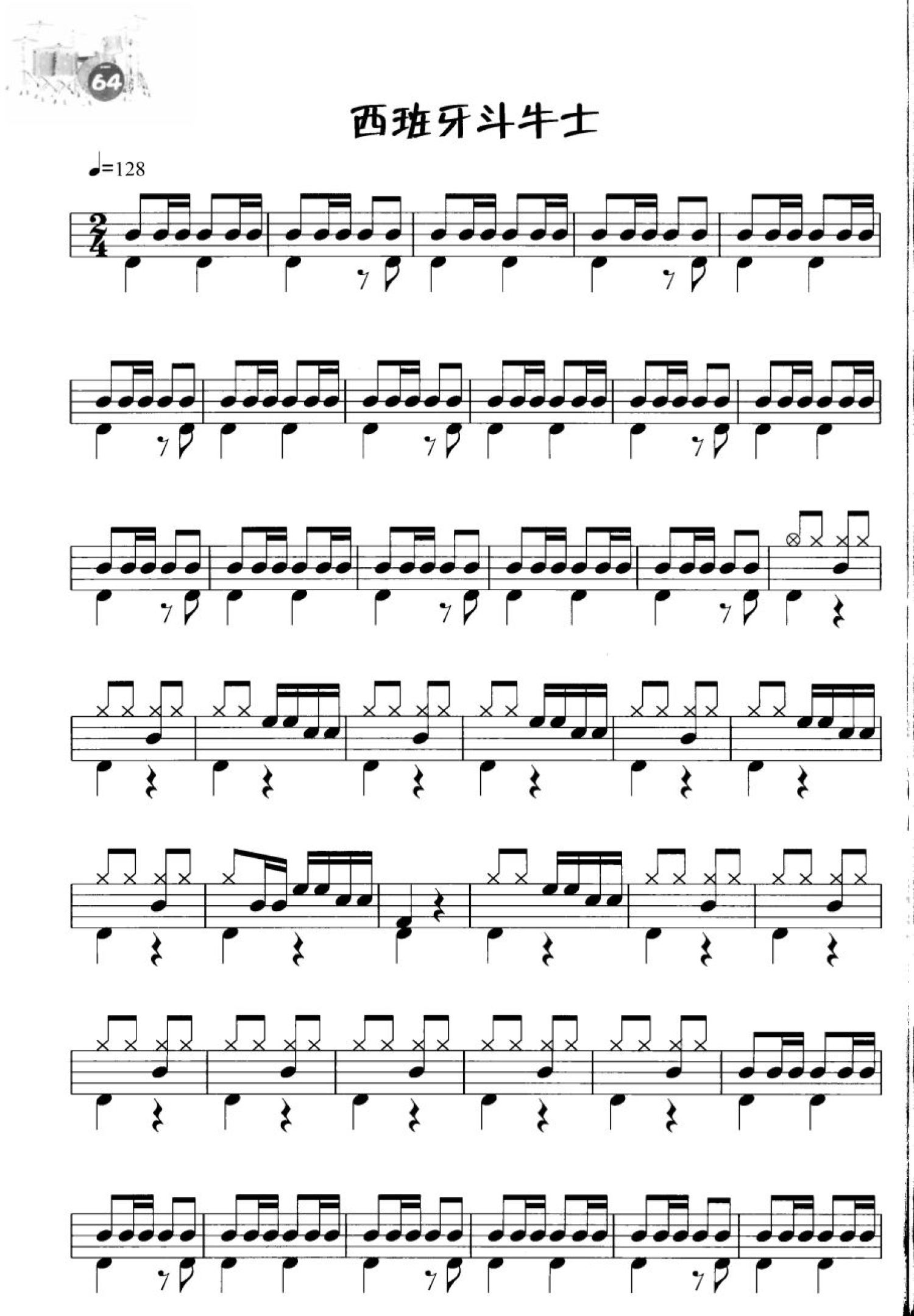 曲谱介绍: 西班牙斗牛士(不带简谱版架子鼓谱)