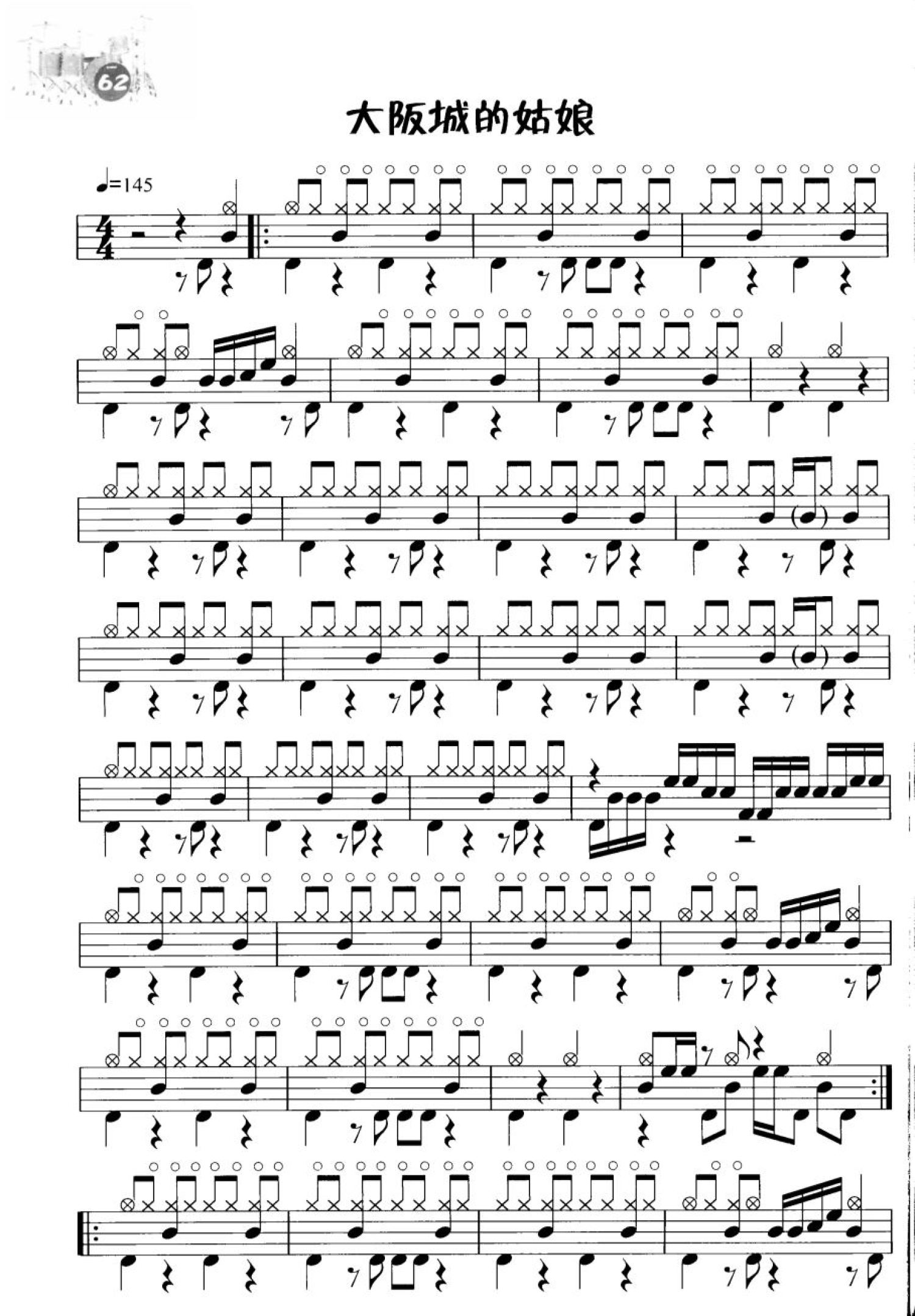 曲谱介绍: 大阪城的姑娘(不带简谱版架子鼓谱)