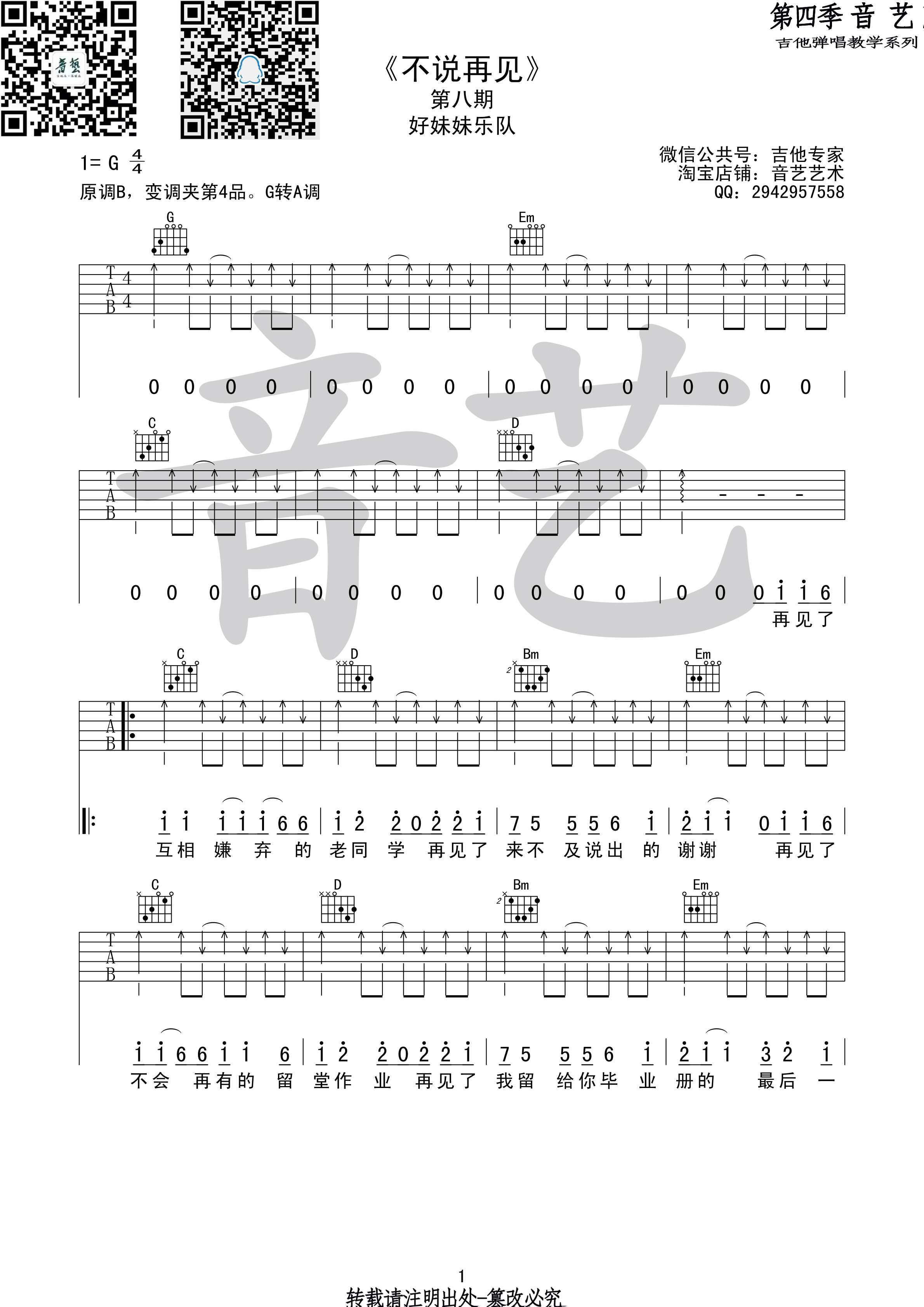 当前位置:琴谱网>吉他弹唱>不说再见