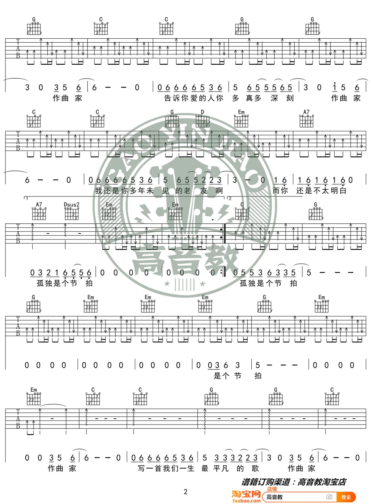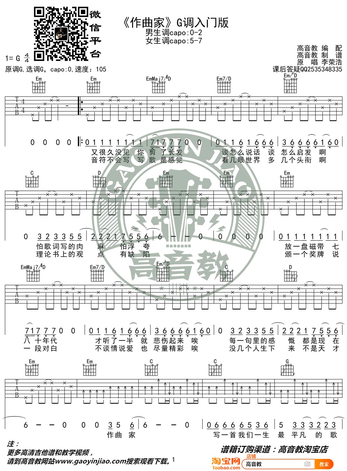 作曲家吉他谱 - 李荣浩 - G调吉他弹唱谱