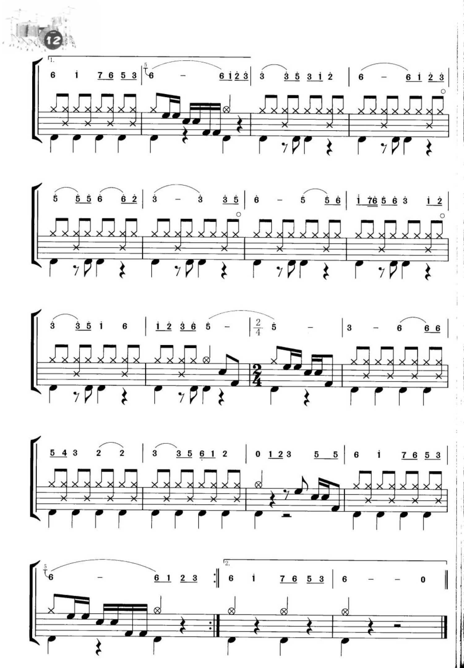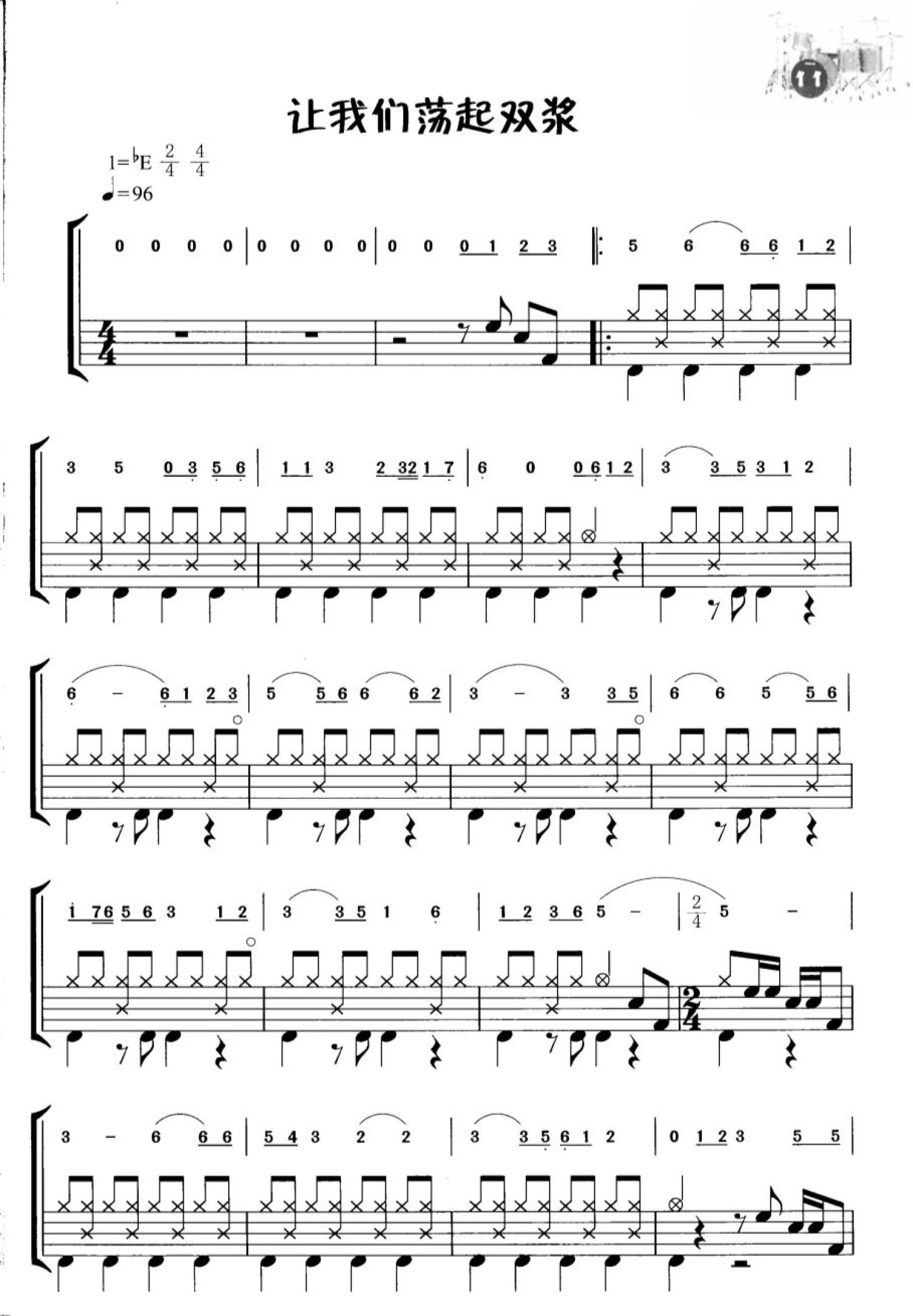 曲谱介绍: 让我们荡起双桨(架子鼓谱)