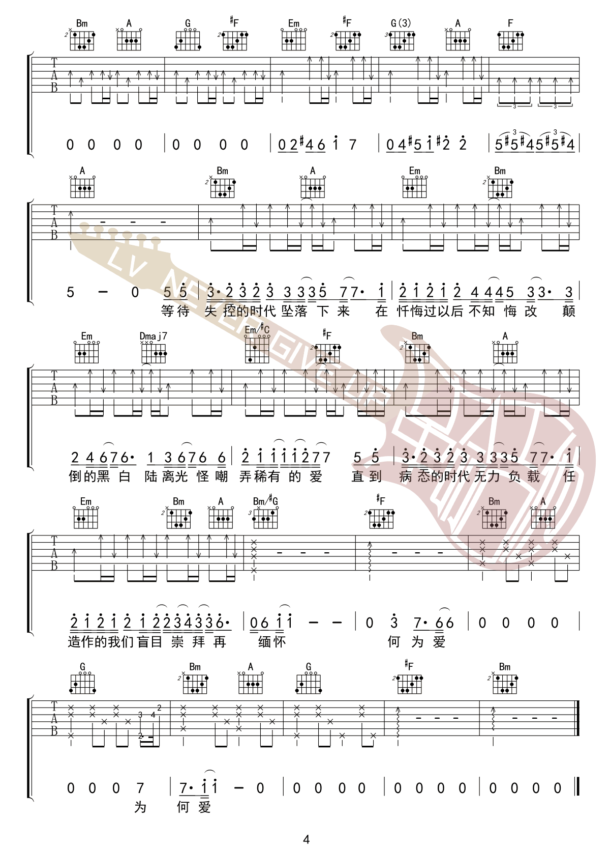 当前位置:琴谱网>吉他弹唱>病态