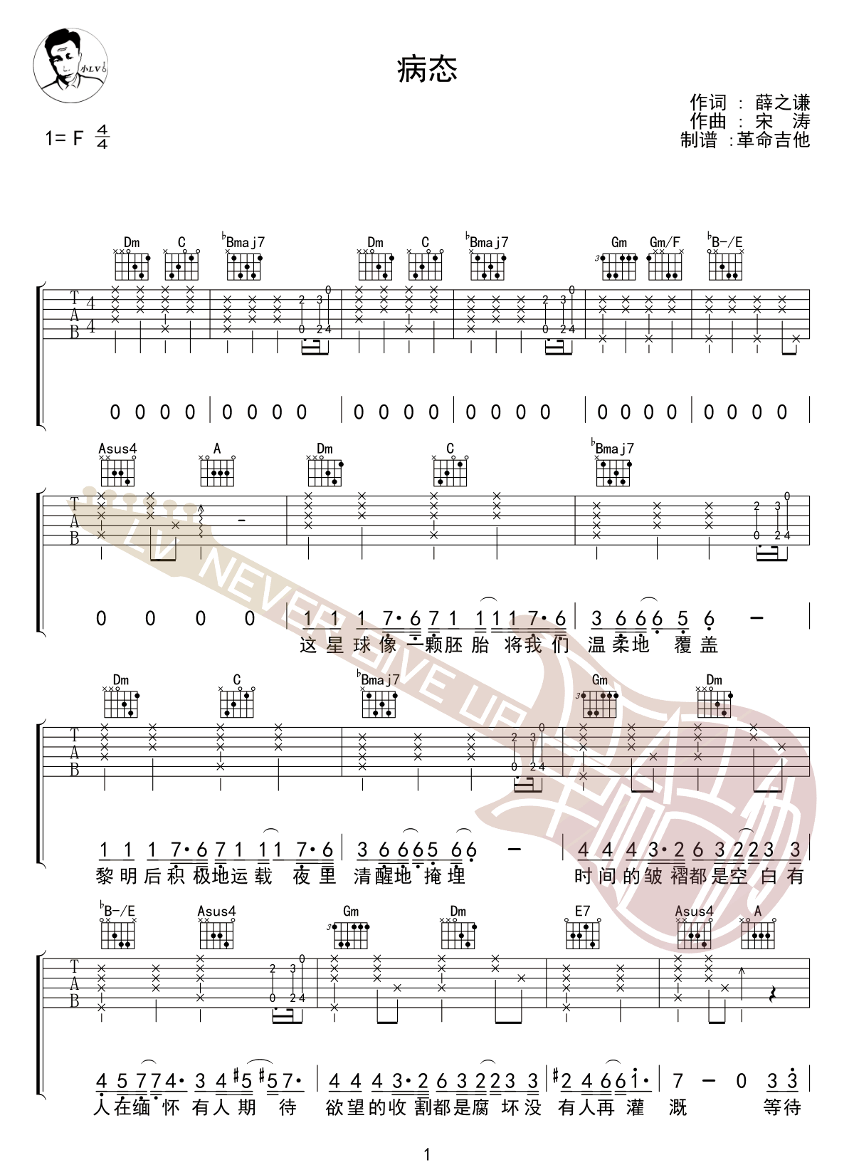 病态吉他谱 - 薛之谦 - F调吉他弹唱谱 - 原版