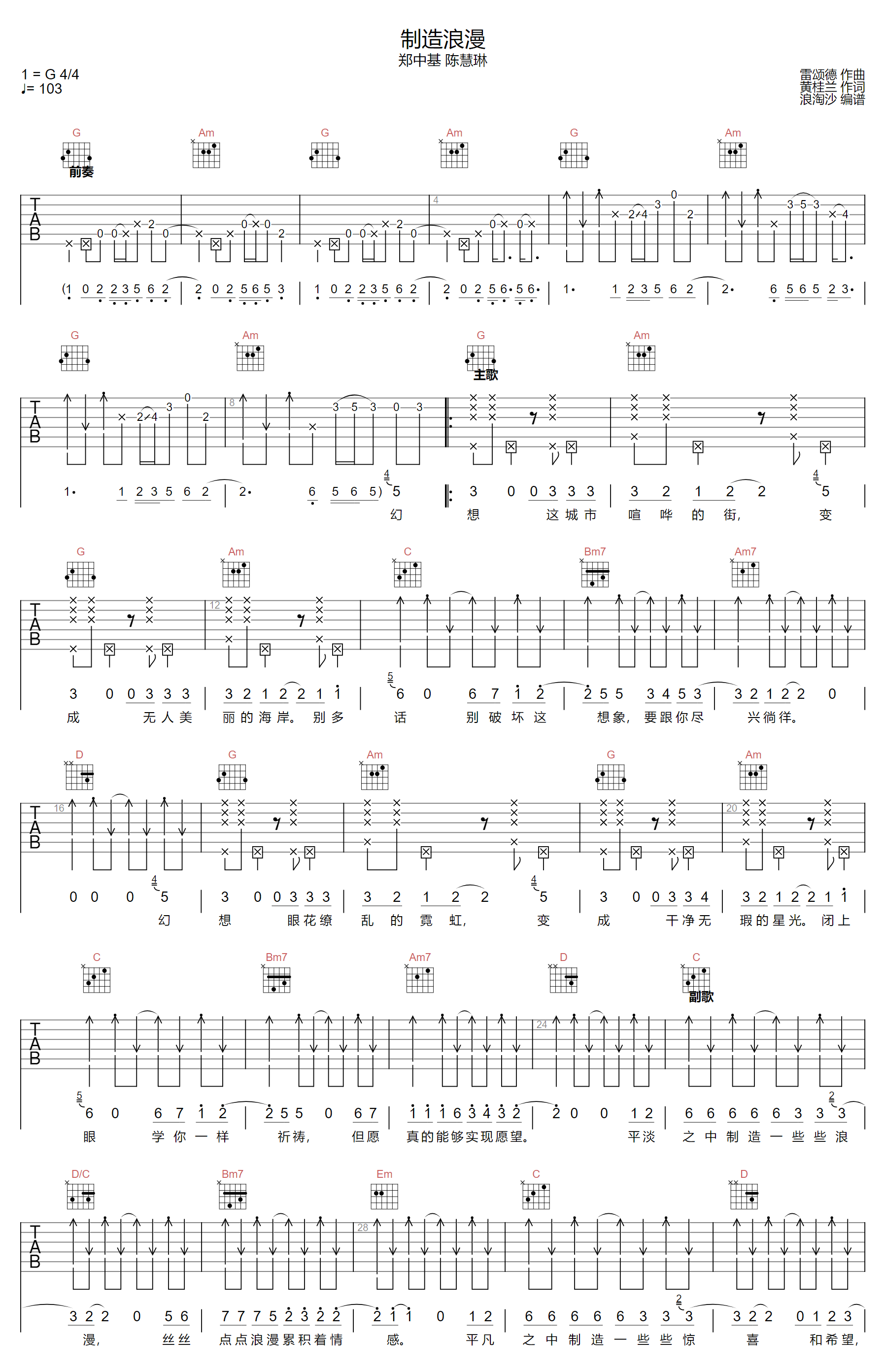 制造浪漫吉他谱 - 郑中基/陈慧琳 - G调吉他弹唱谱 - 原版