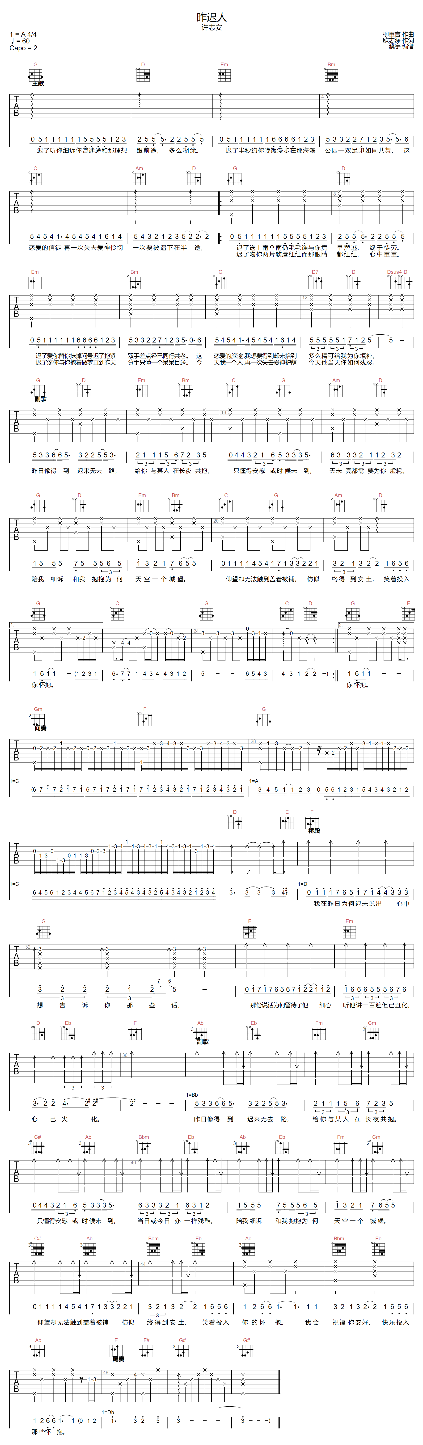 当前位置:琴谱网>吉他弹唱>昨迟人