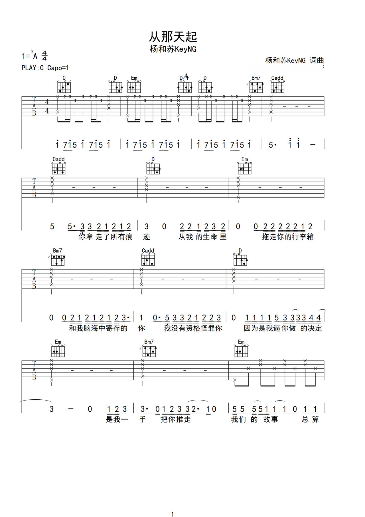 从那天起吉他谱 - 杨和苏 - G调吉他弹唱谱 - 原版