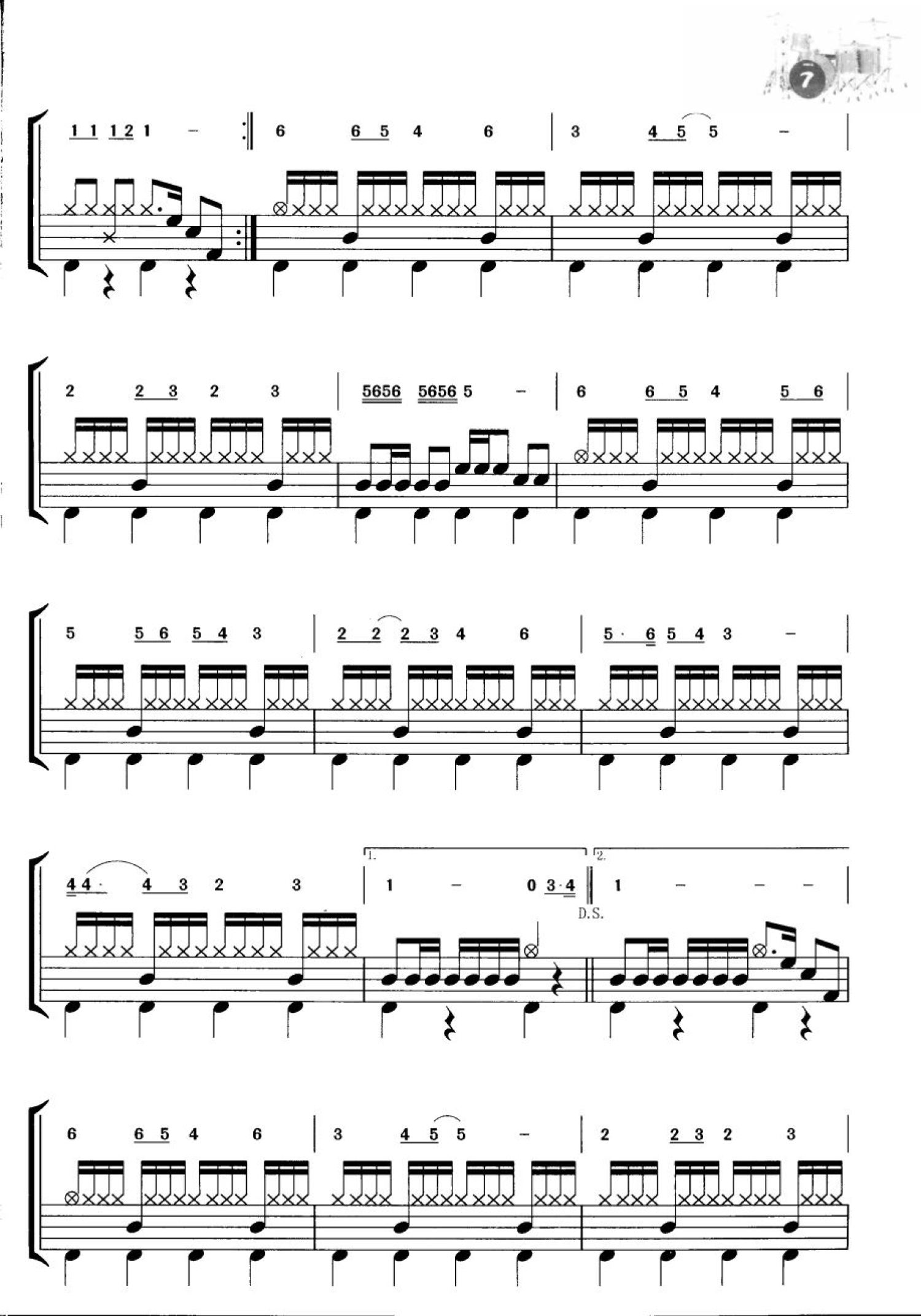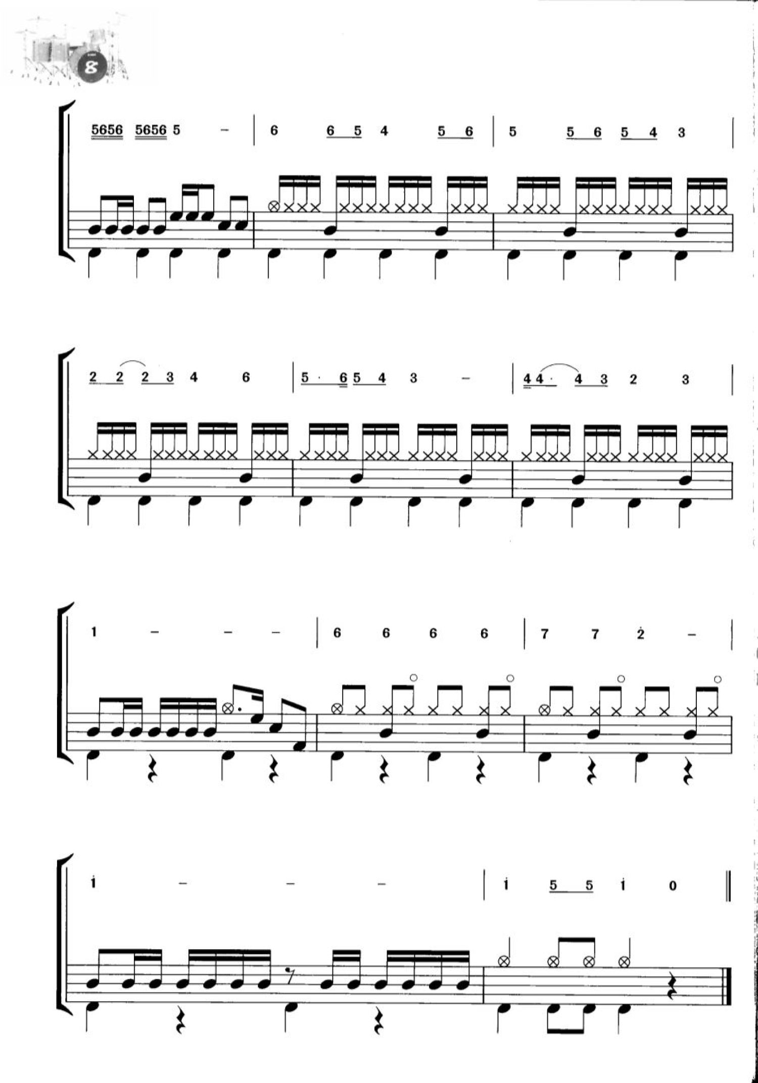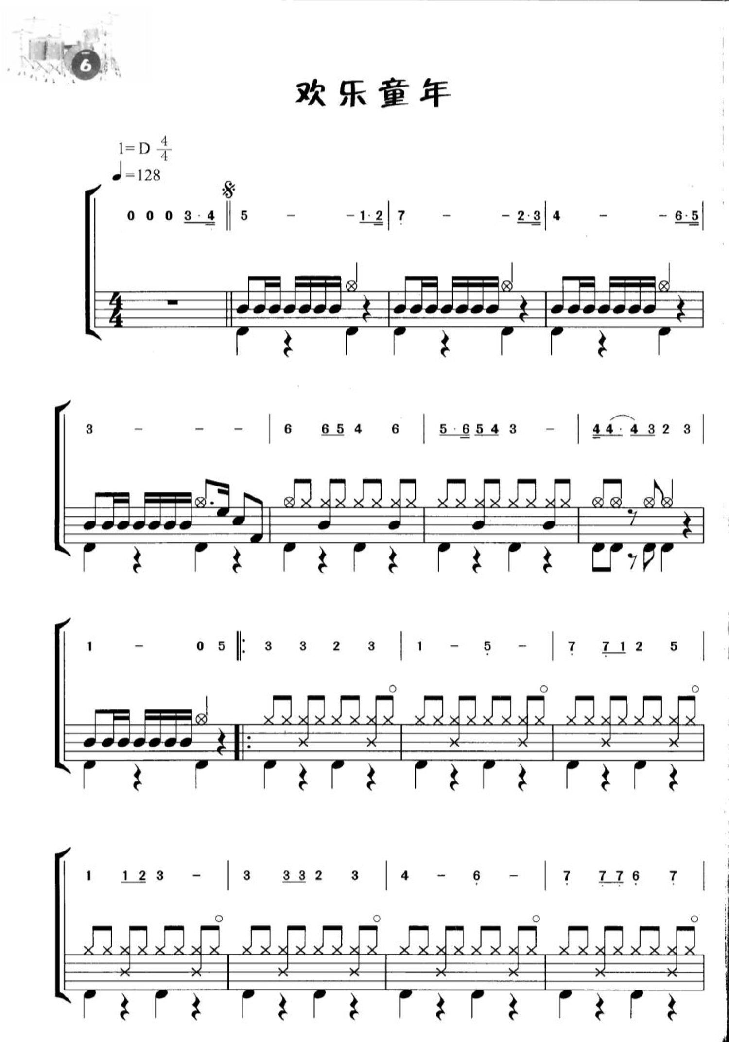 曲谱介绍: 欢乐童年(架子鼓谱)