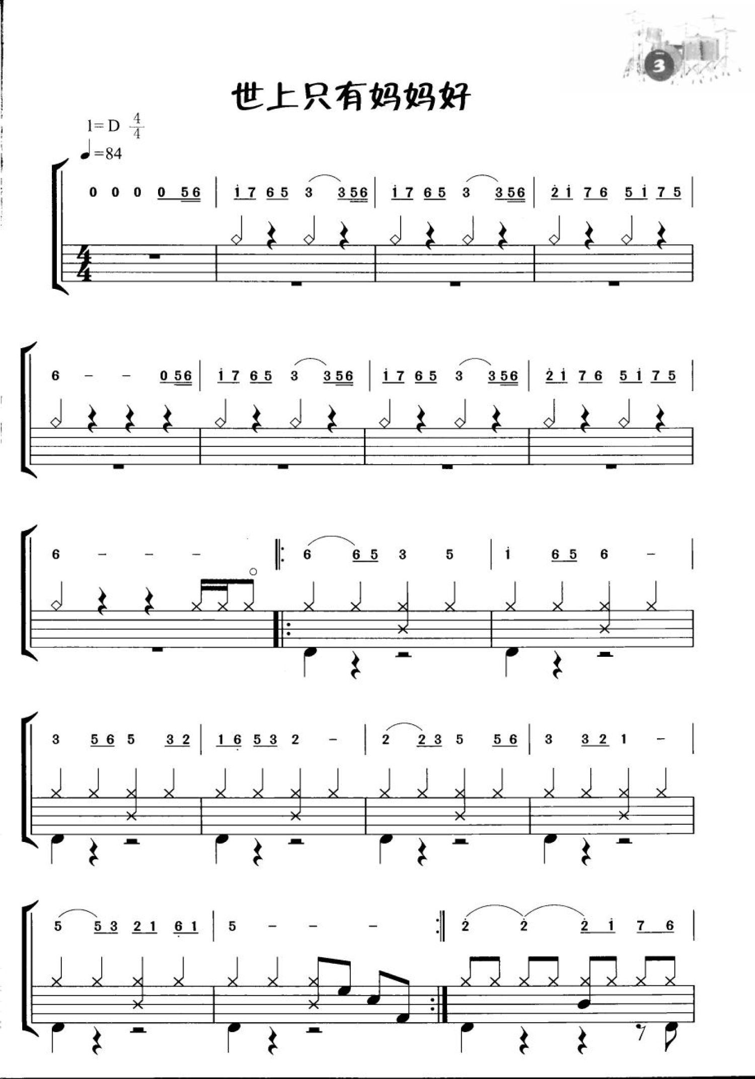 曲谱介绍: 世上只有妈妈好(架子鼓谱)