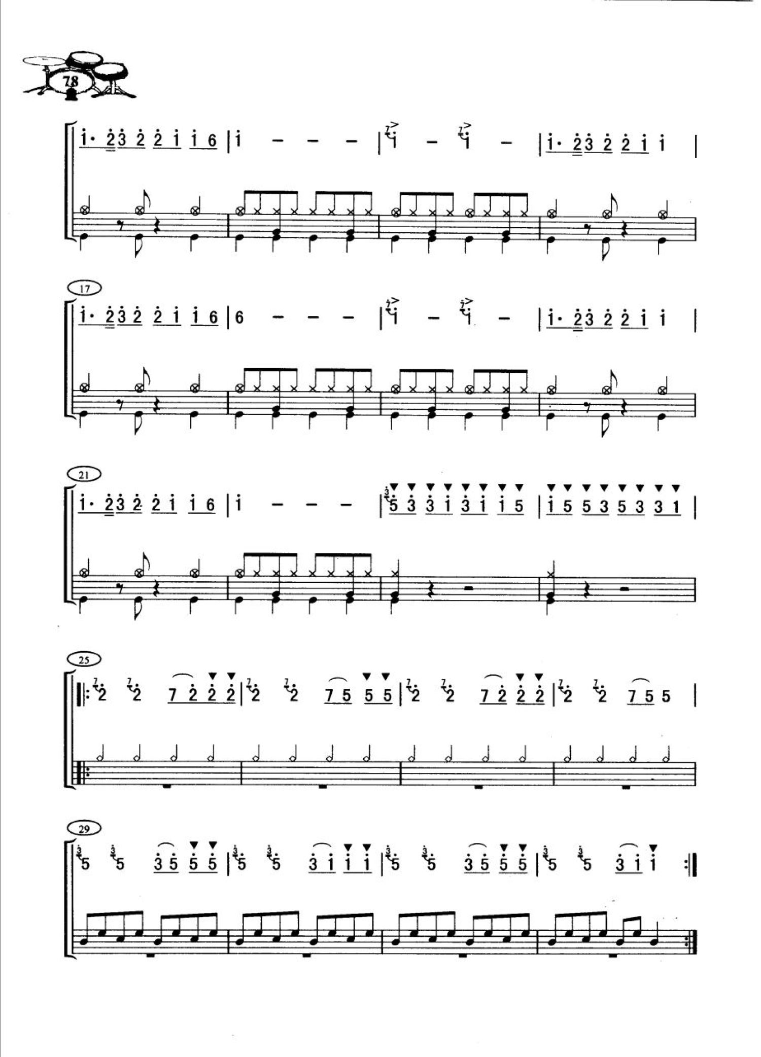 北京喜讯传边寨鼓谱 - 架子鼓谱 - 五个桶鼓演奏谱