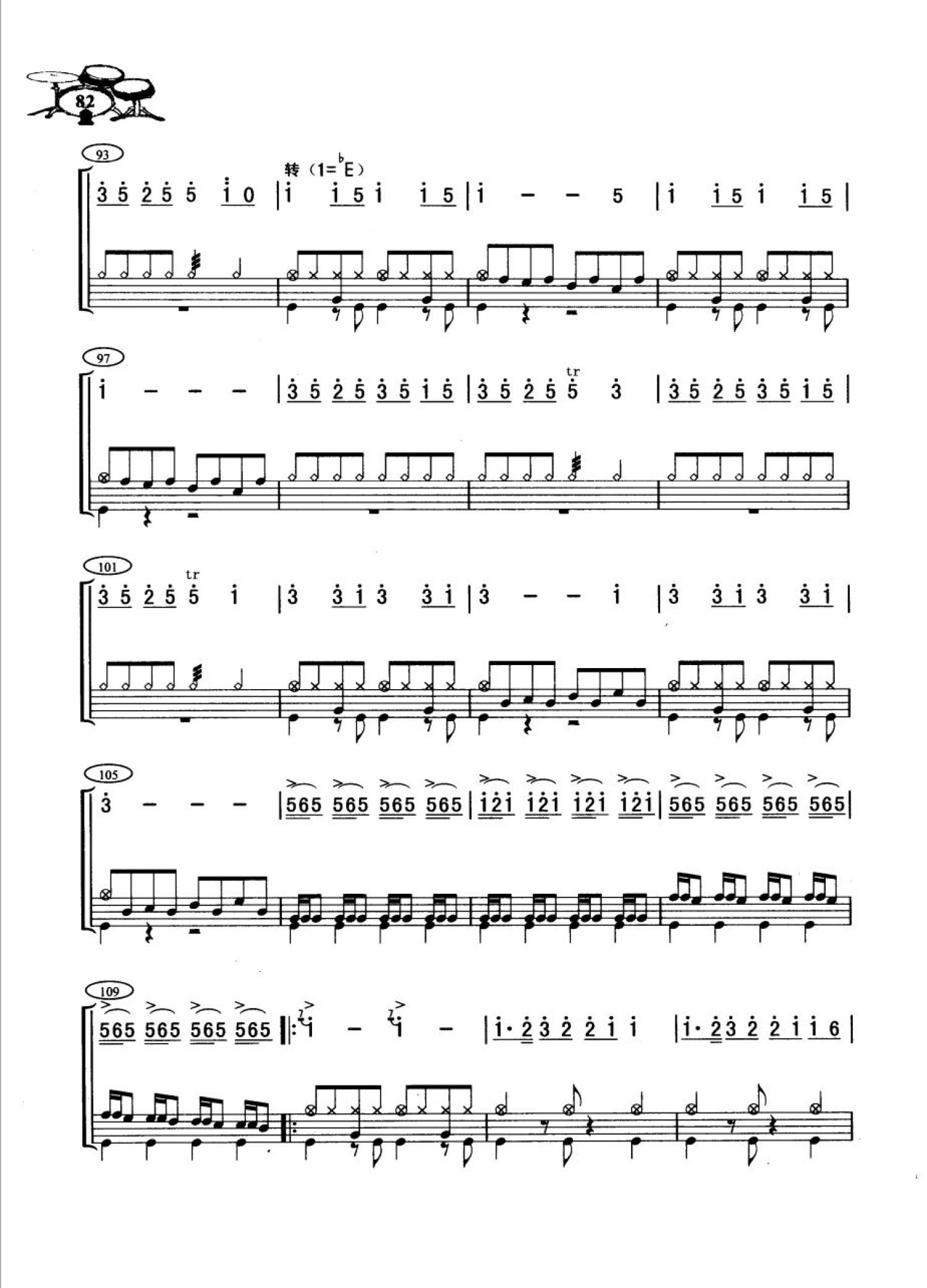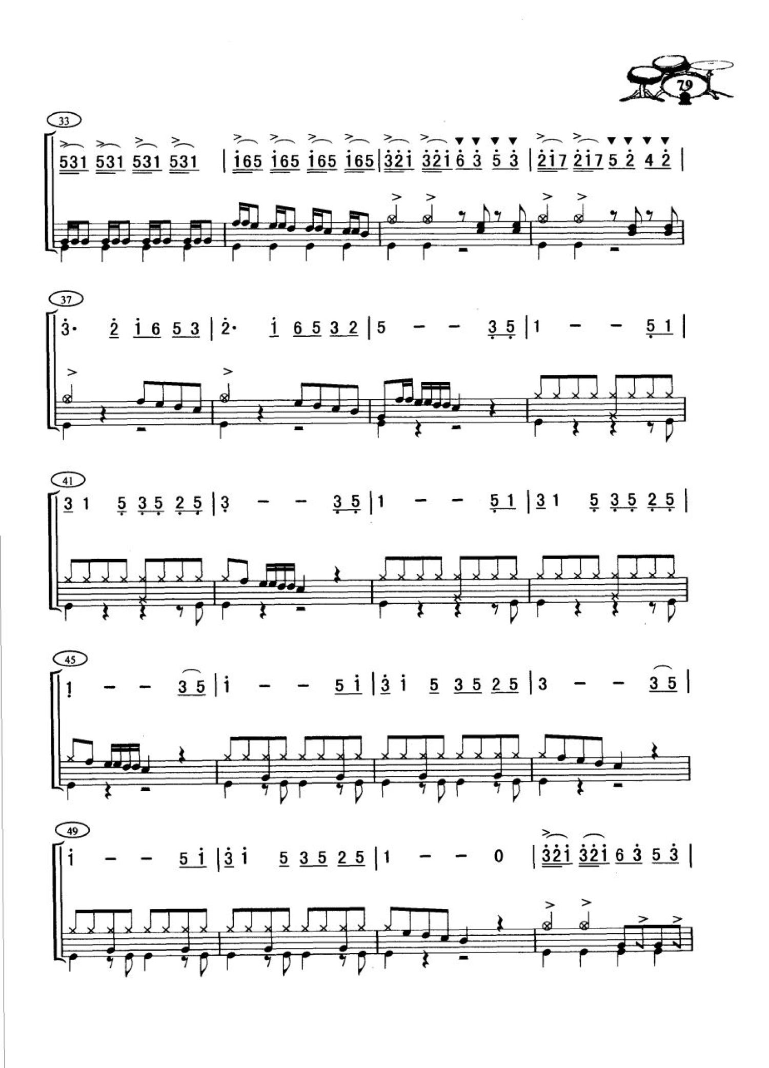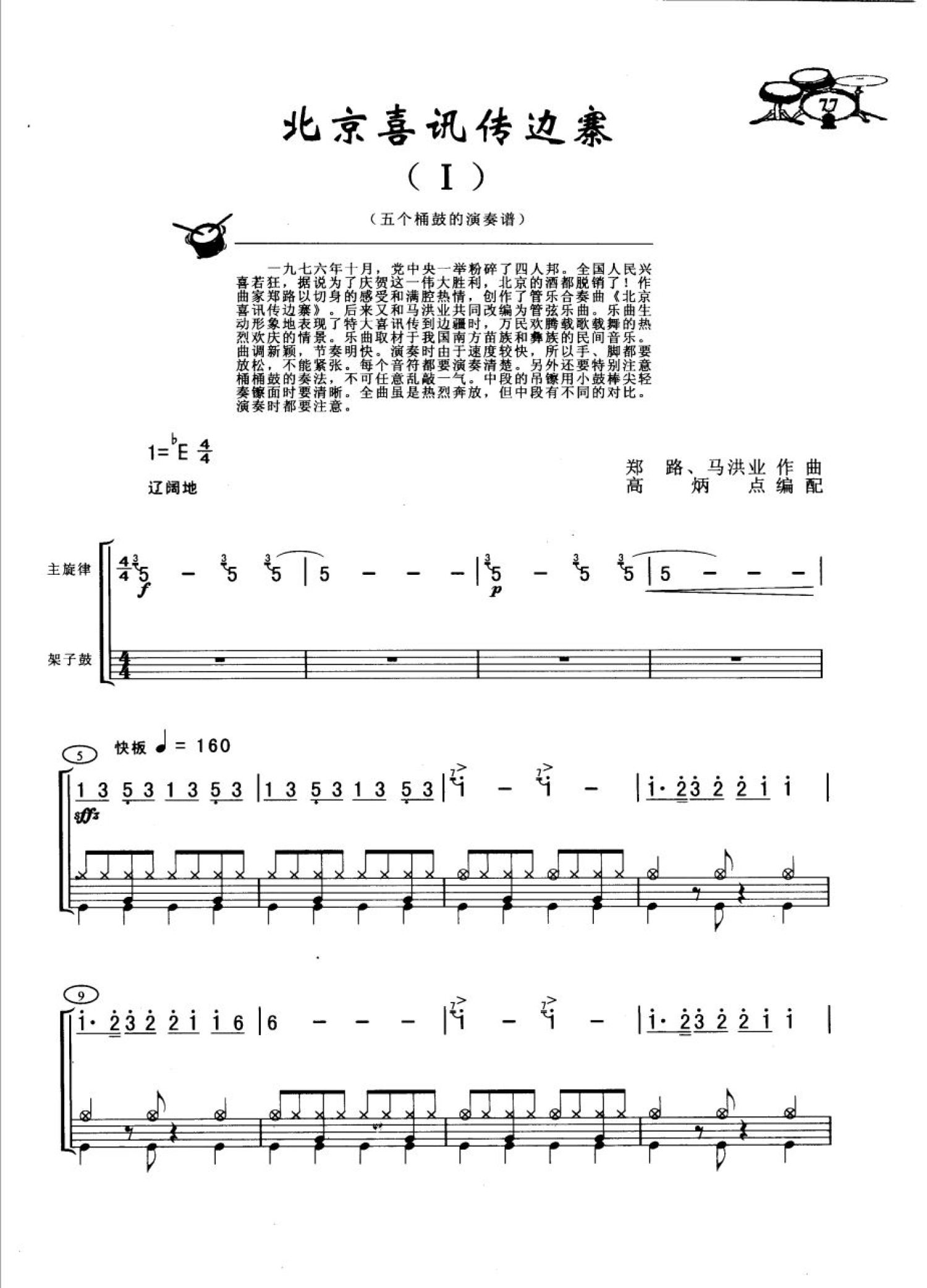 曲谱介绍: 北京喜讯传边寨(五个桶鼓演奏谱)(架子鼓谱)