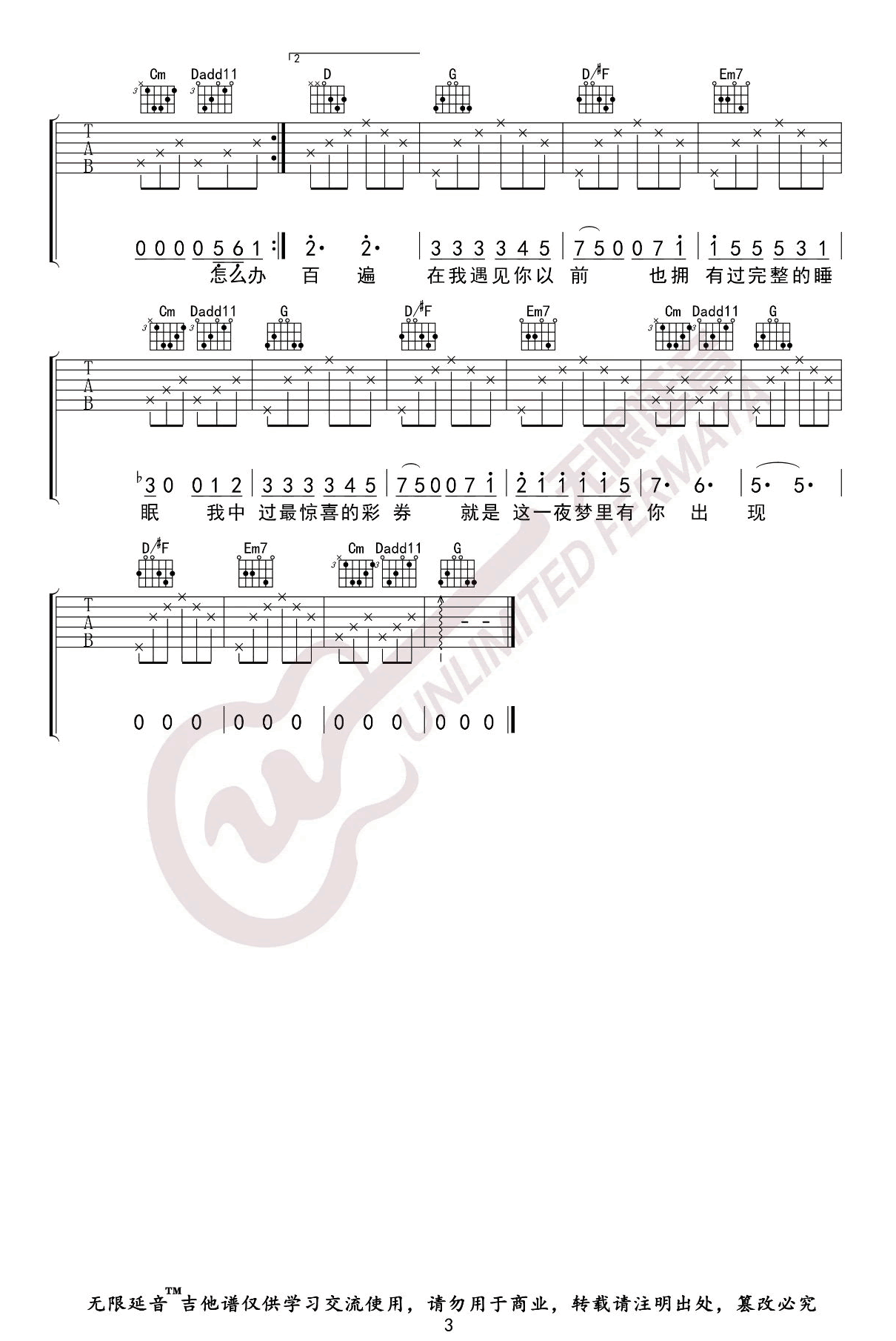 曲谱介绍: 薛之谦演唱的一首歌曲,6/8拍的节奏,这首歌曲的原调为#F调,这里曲谱采用了G调指法进行编配,演唱时降半音调弦可回到原调,也可根据个人实际嗓音情况选择不降音或夹几品。曲谱由琴谱网更新上传,来源于@无限延音编配出品。歌曲旋律柔和萦绕,编曲以吉他和键盘为基调,铺排温馨甜蜜的情感氛围,歌词充盈平淡的惊喜,将情绪以日常而俏皮的方式呈现,诠释怦然入心的浪漫邂逅。