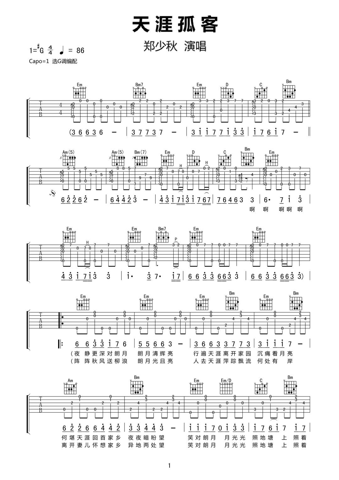 当前位置:琴谱网>吉他弹唱>天涯孤客