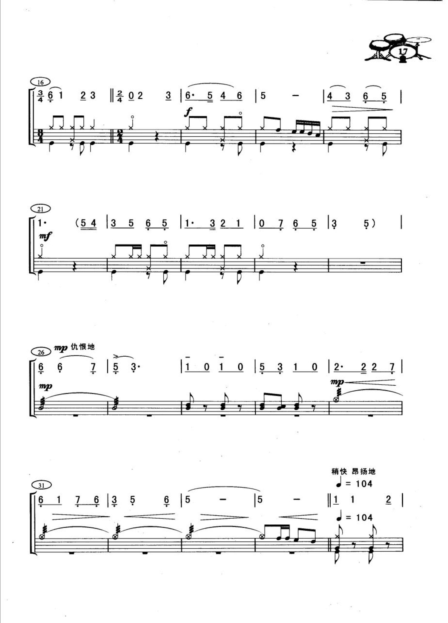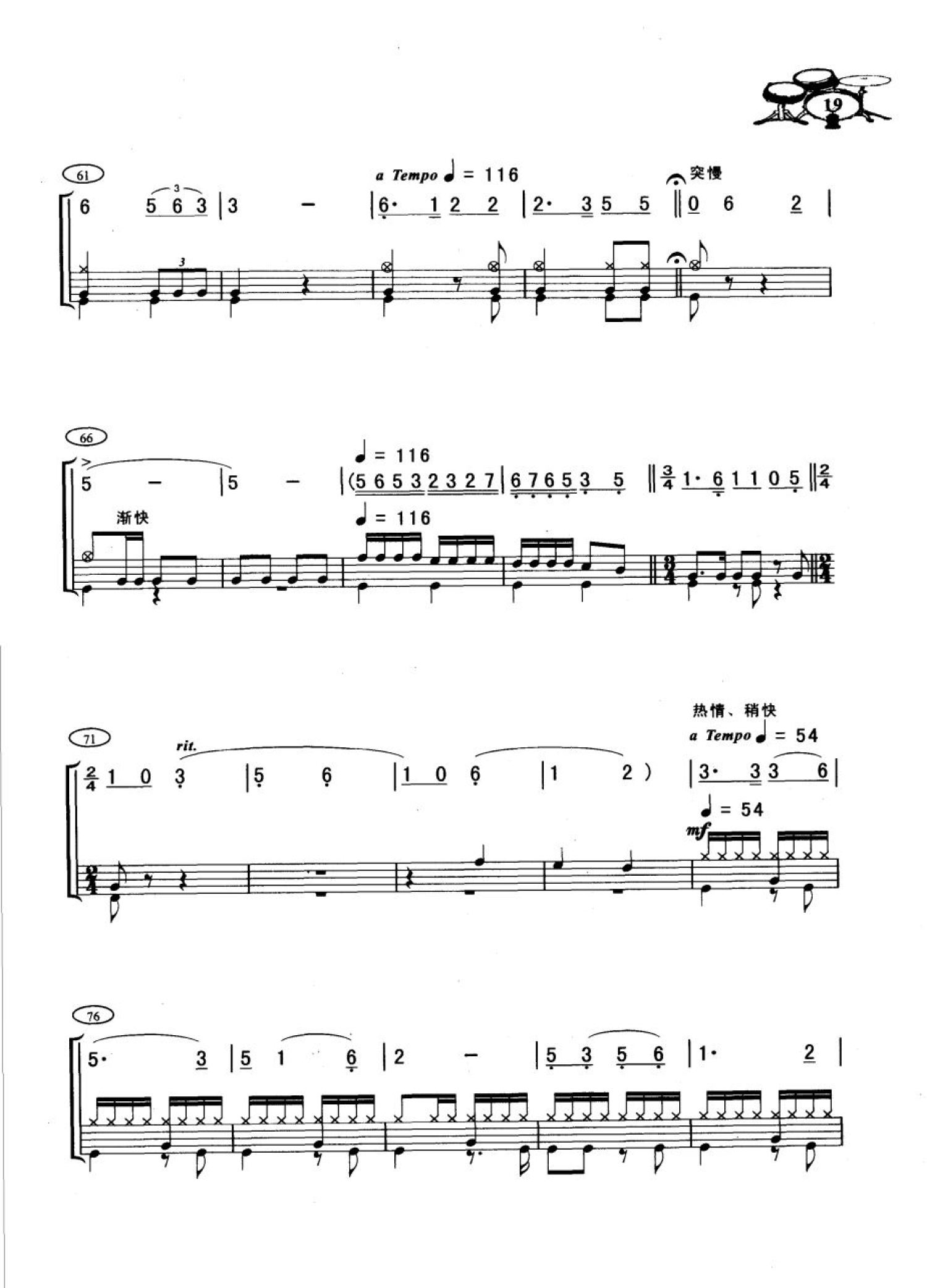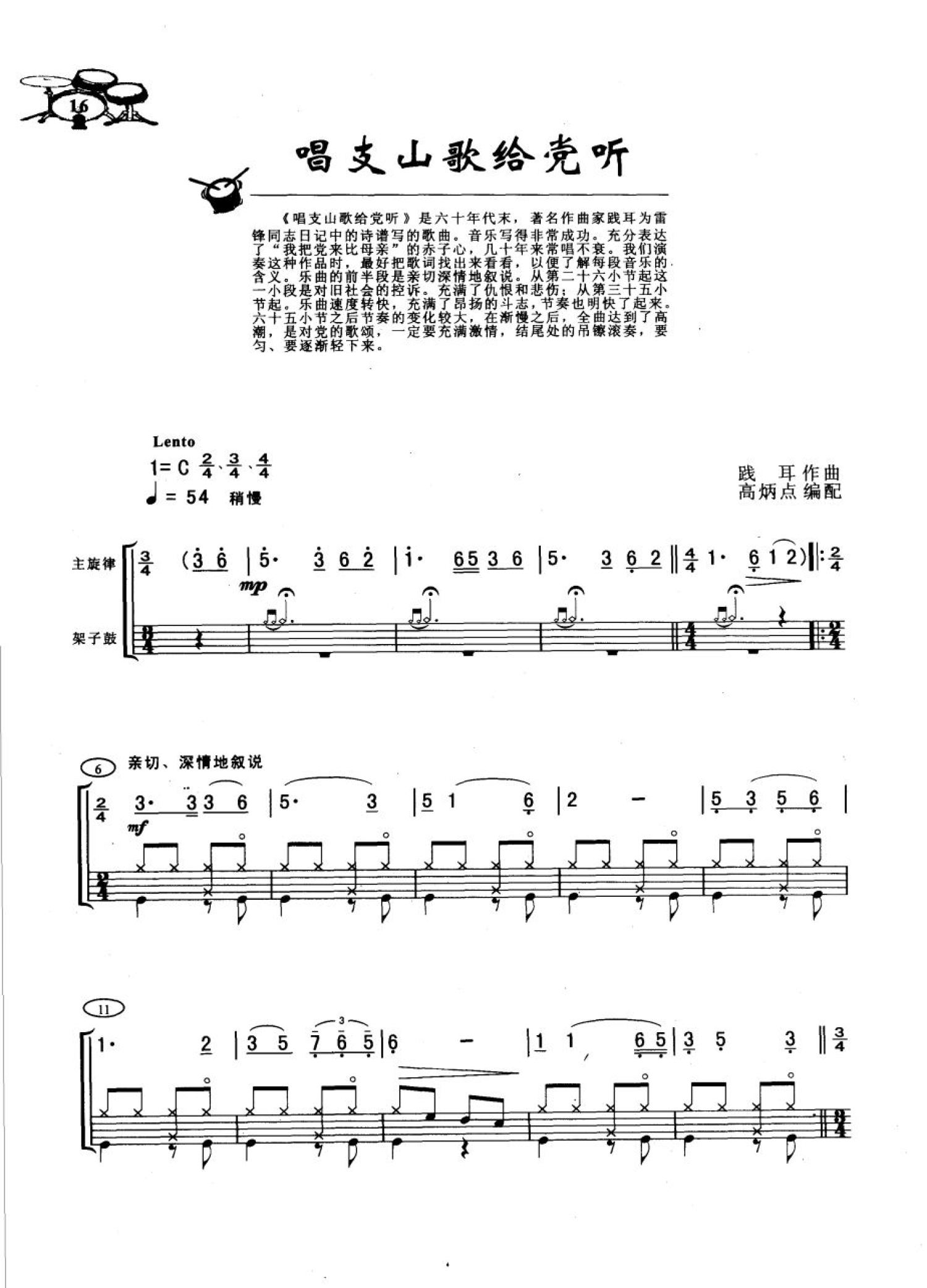 曲谱介绍: 唱支山歌给党听(架子鼓谱)