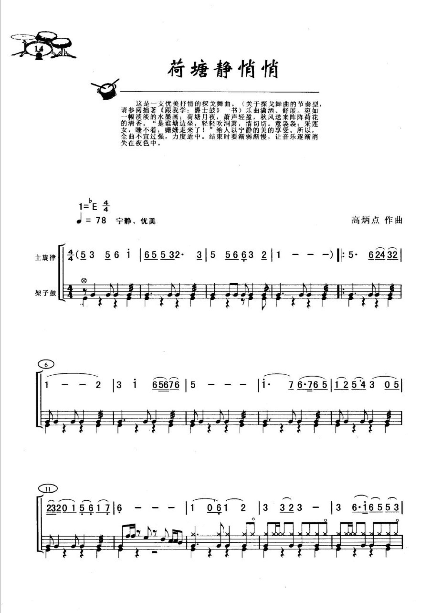 曲谱介绍: 荷塘静悄悄(架子鼓谱)