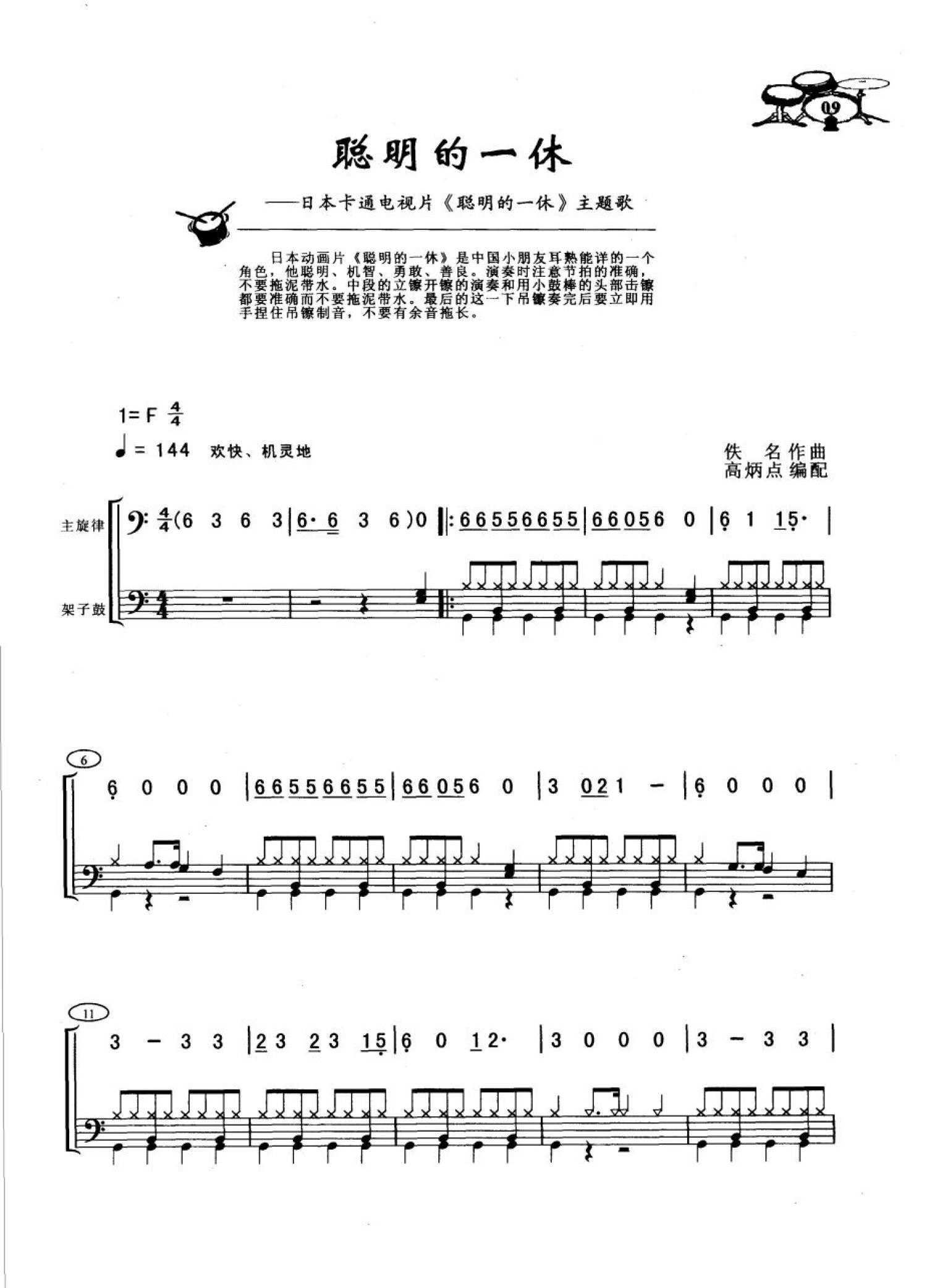 曲谱介绍: 聪明的一休(架子鼓谱)