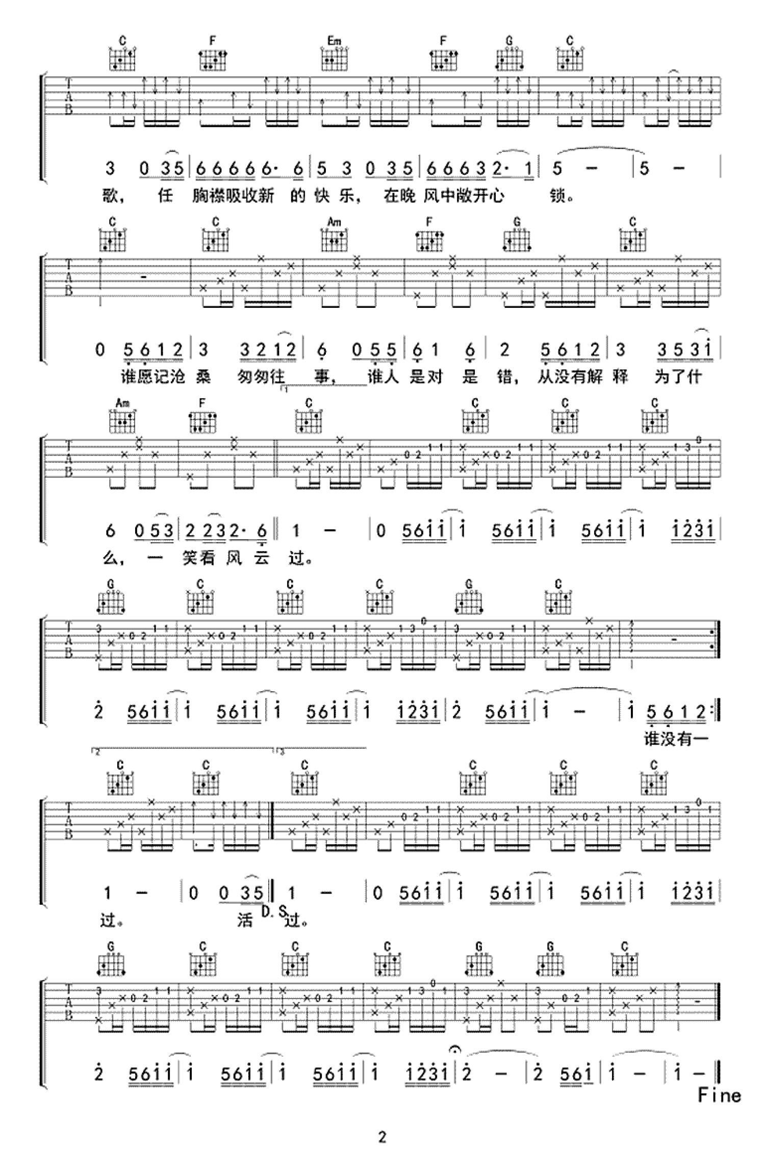 吉他弹唱C调来源:老知了4071 浏览2018-03-19 13:34发布图谱共2页