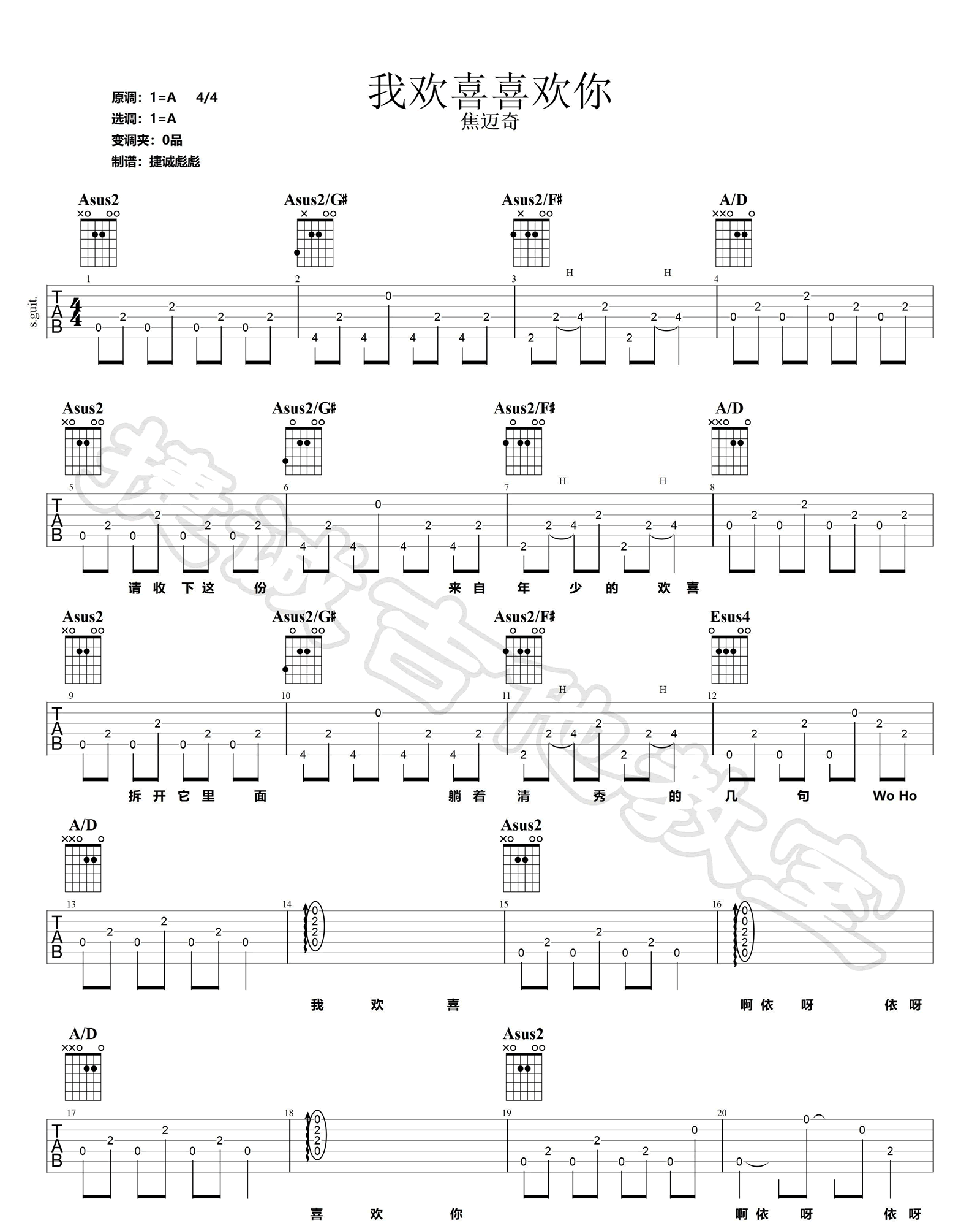 我欢喜喜欢你吉他谱 - 焦迈奇 - A调吉他弹唱谱