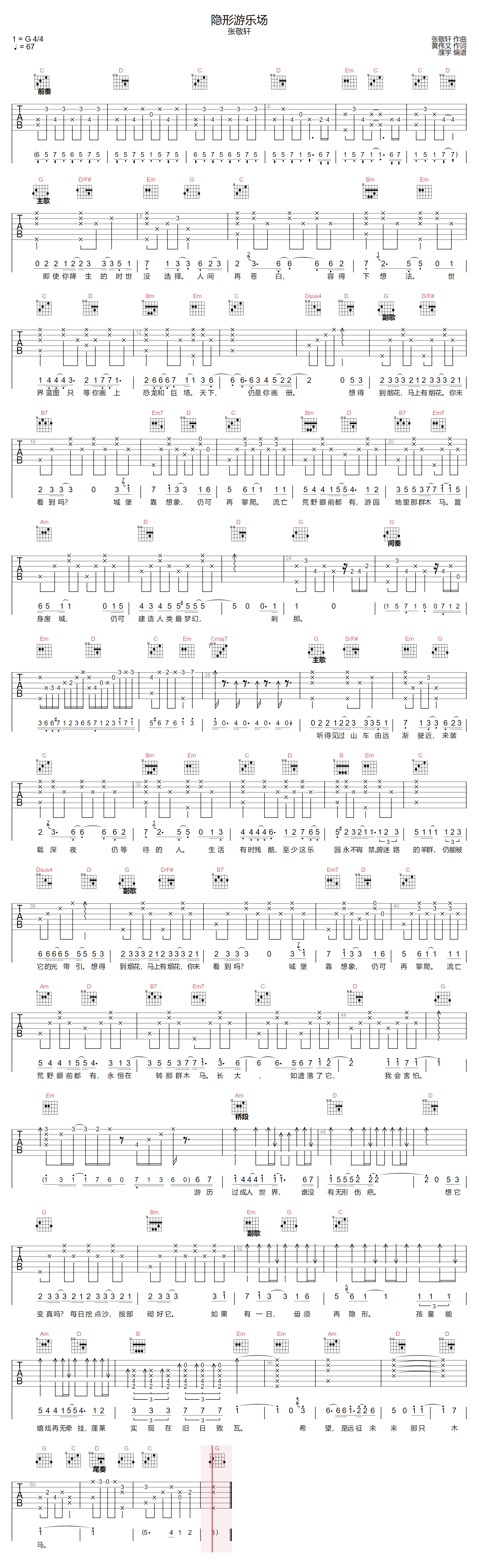 隐形游乐场吉他谱 - 张敬轩 - G调吉他弹唱谱 - 原版