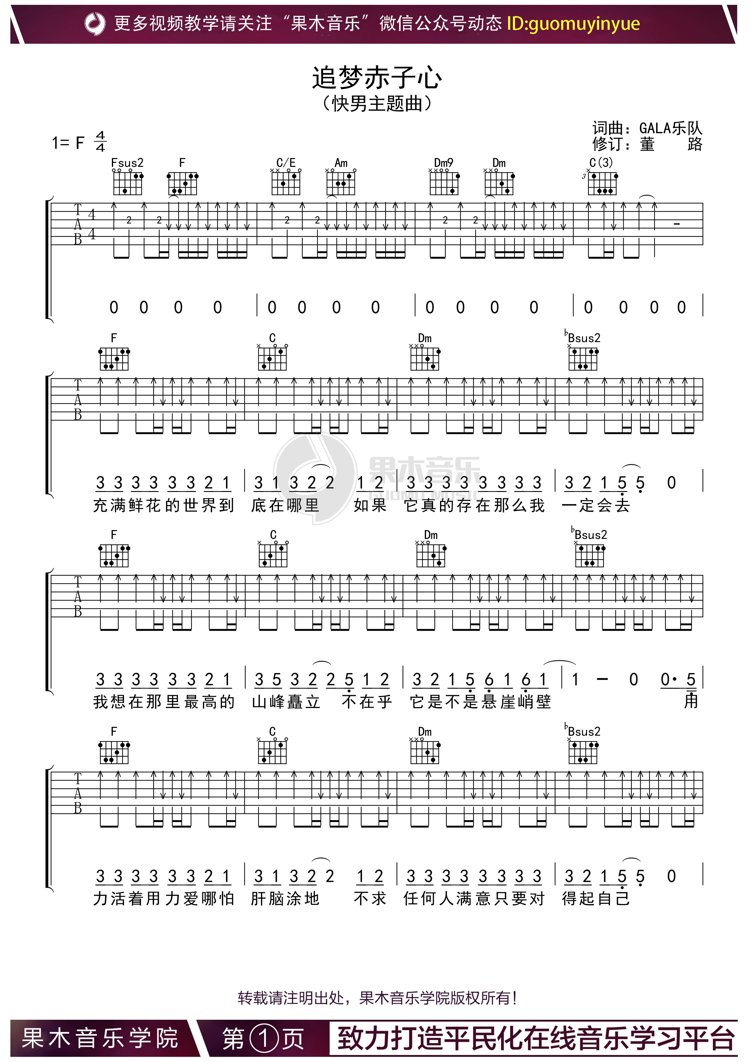 追梦赤子心吉他谱 - GALA乐队 - F调吉他弹唱谱