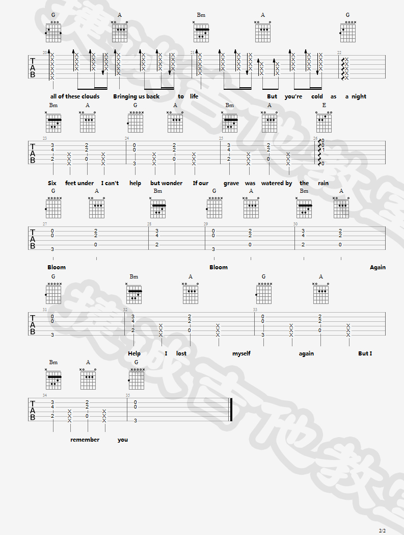 当前位置:琴谱网>吉他弹唱>Six Feet Under