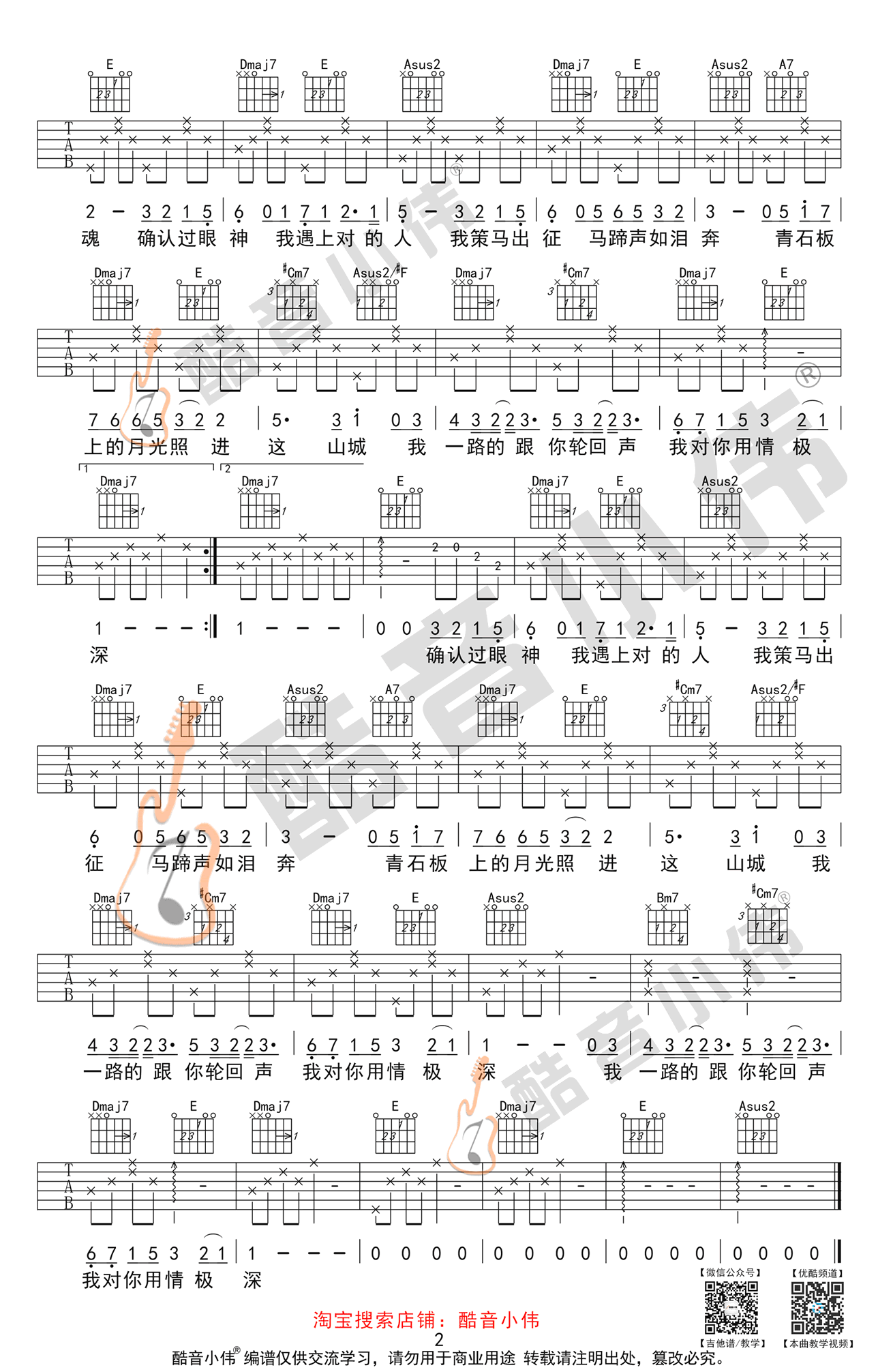 曲谱介绍: 林俊杰演唱的一首歌曲,4/4拍的节奏,这首歌曲的原调为B调,这里曲谱采用了A调指法进行编配,演唱时夹变调夹2品可回到原调,也可根据个人实际嗓音情况选择。曲谱由琴谱网更新上传,来源于@酷音小伟编配出品。赤壁有很多人为它写过诗,悲惨的、凄美的,简单的文字丰富的感情,这是诗的特点。这首歌曲也像诗一般的唯美,让你相信歌曲里的童话,终有一个你会遇上一个对的人与你四目相对。