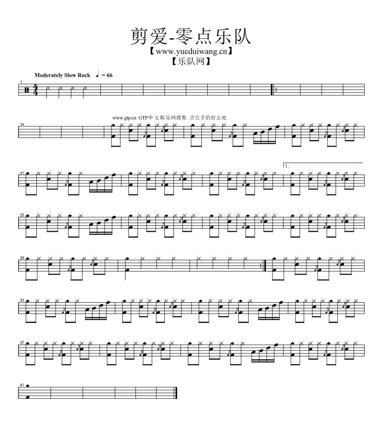 剪爱鼓谱 - 零点乐队 - 架子鼓谱