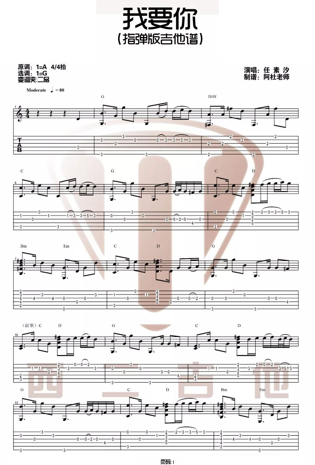 我要你吉他谱 - 任素汐 - 吉他独奏谱