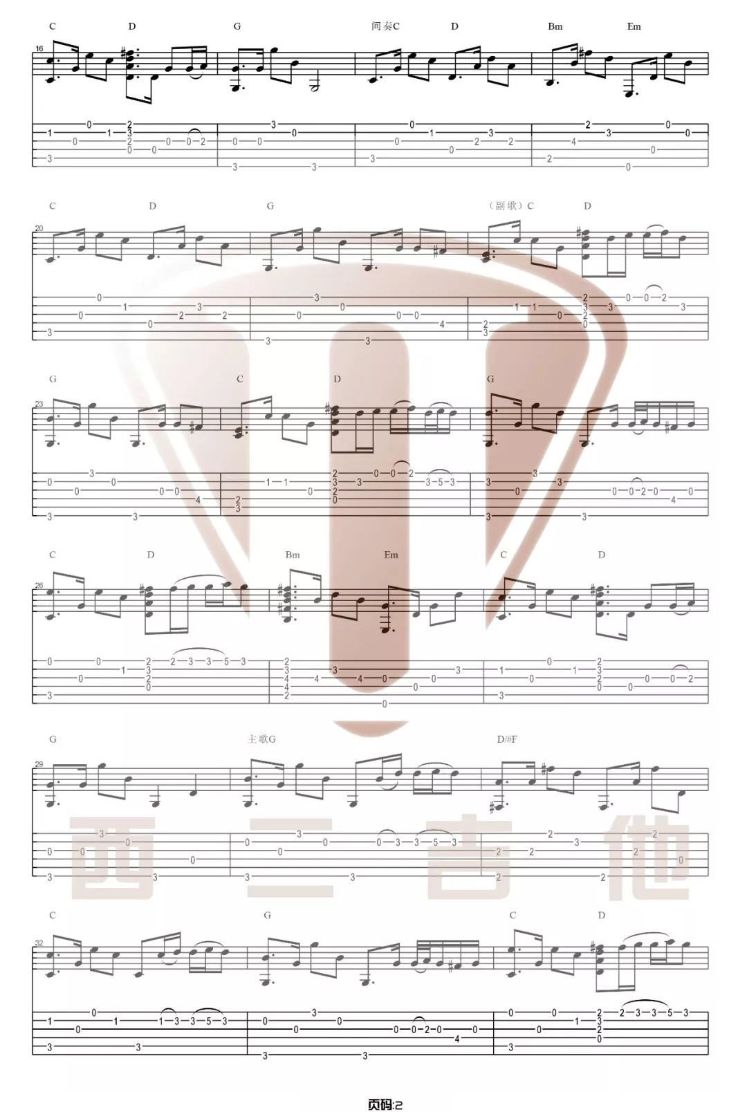 曲谱介绍: 任素汐的一首指弹吉他曲目,这首曲子采用的是标准调弦,4/4拍的节奏,无需特殊调音。演奏时建议夹变调夹2品,也可根据个人实际情况选择。曲谱由琴谱网更新上传,来源于@西二吉他编配出品。这首歌是电影《驴得水》里面的插曲,由任素汐演唱,一首非常好听的歌曲,这里是改编成指弹吉他曲的版本,旋律一样非常好听。